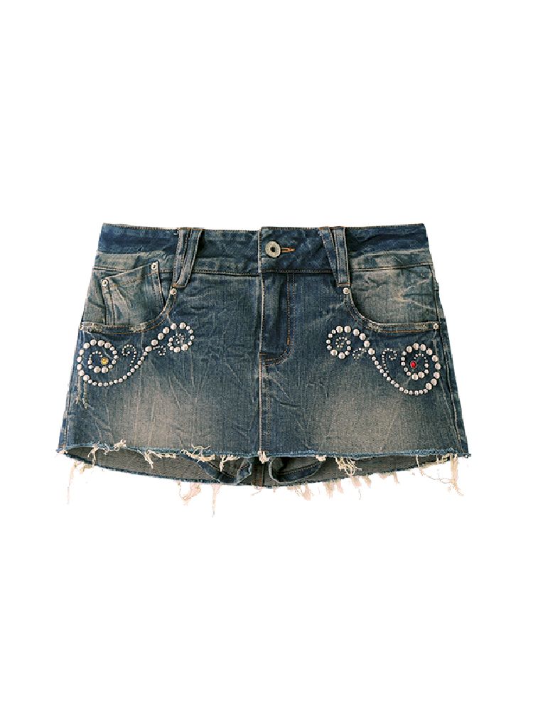 Rivet Hot Rhinestone Denim Skirt【s0000010658】