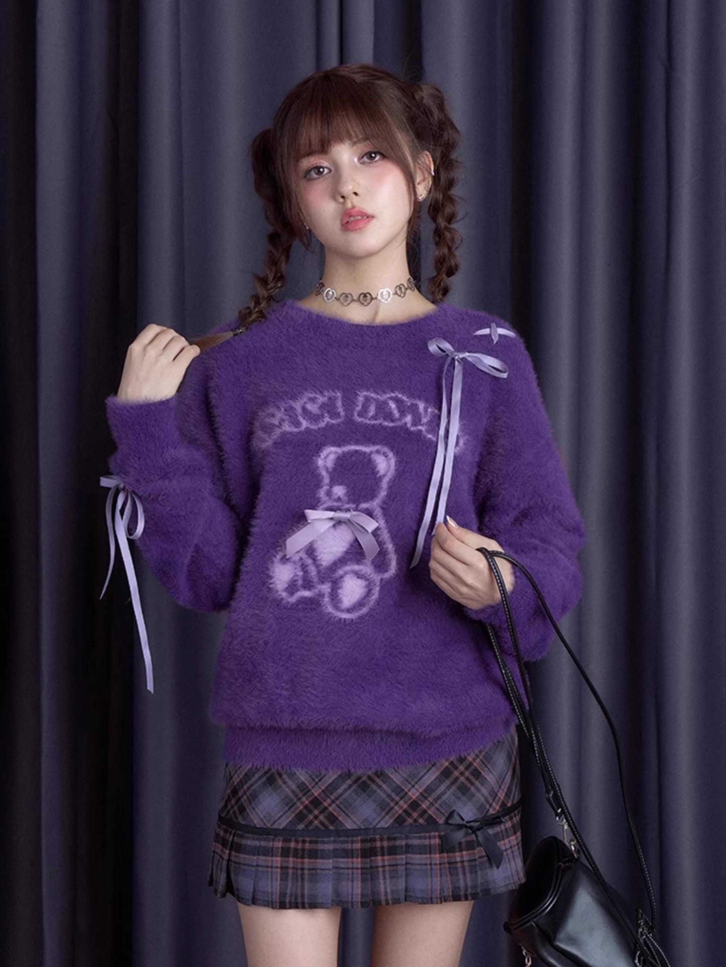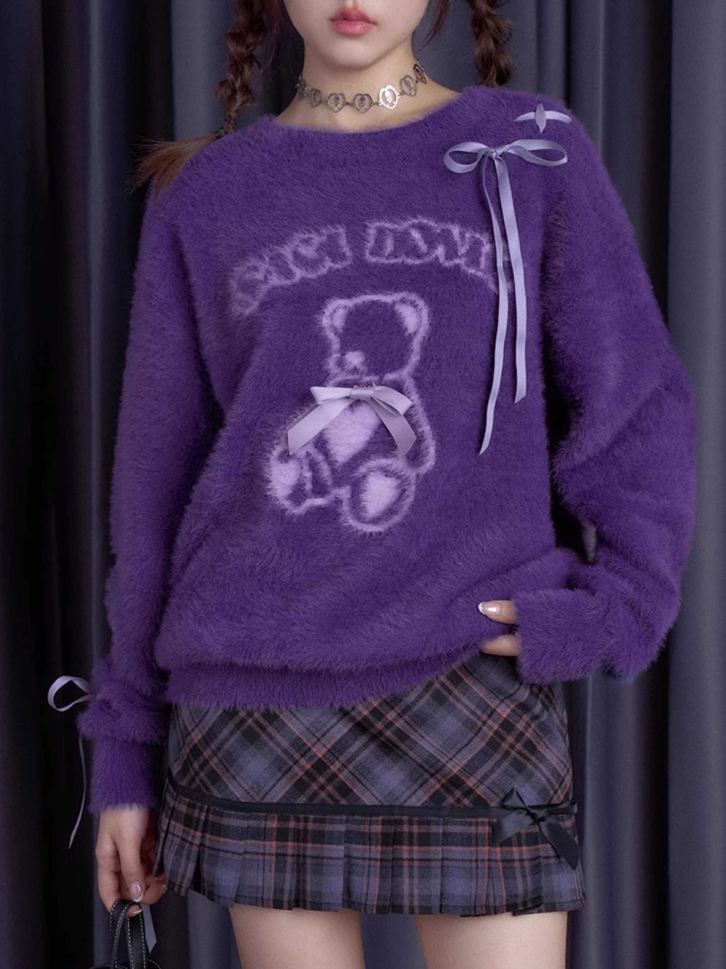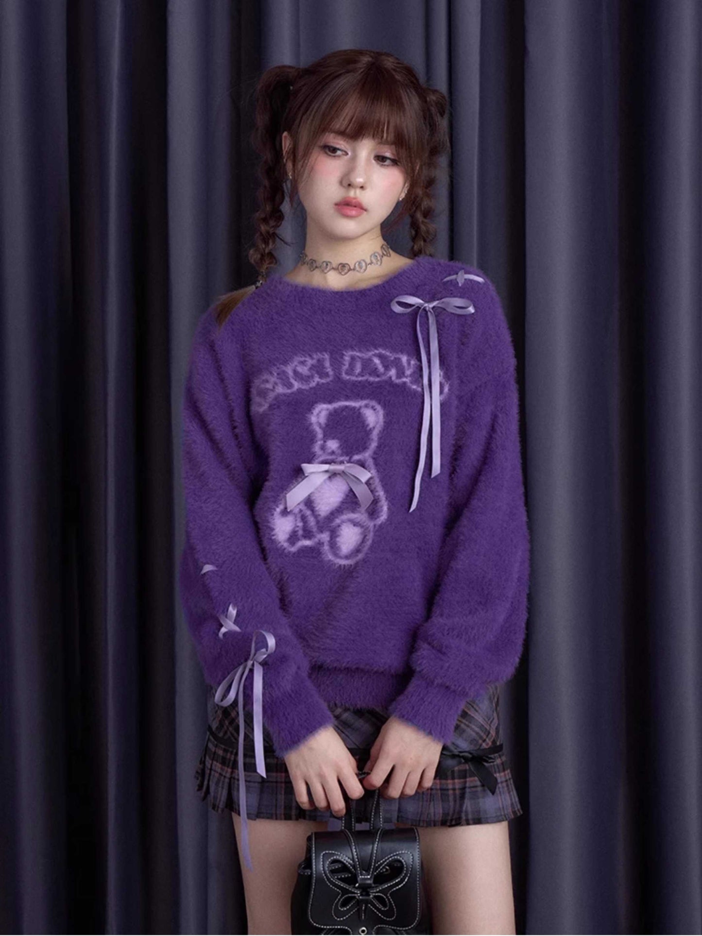 Purple bear ribbon sweater【s0000010666】