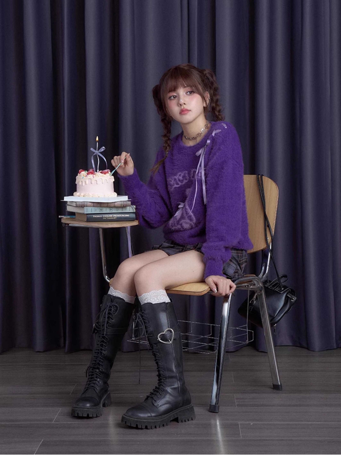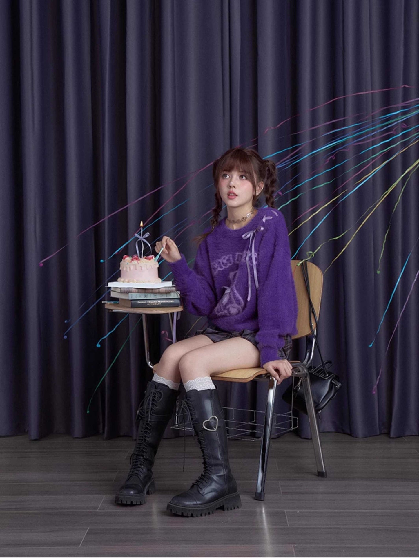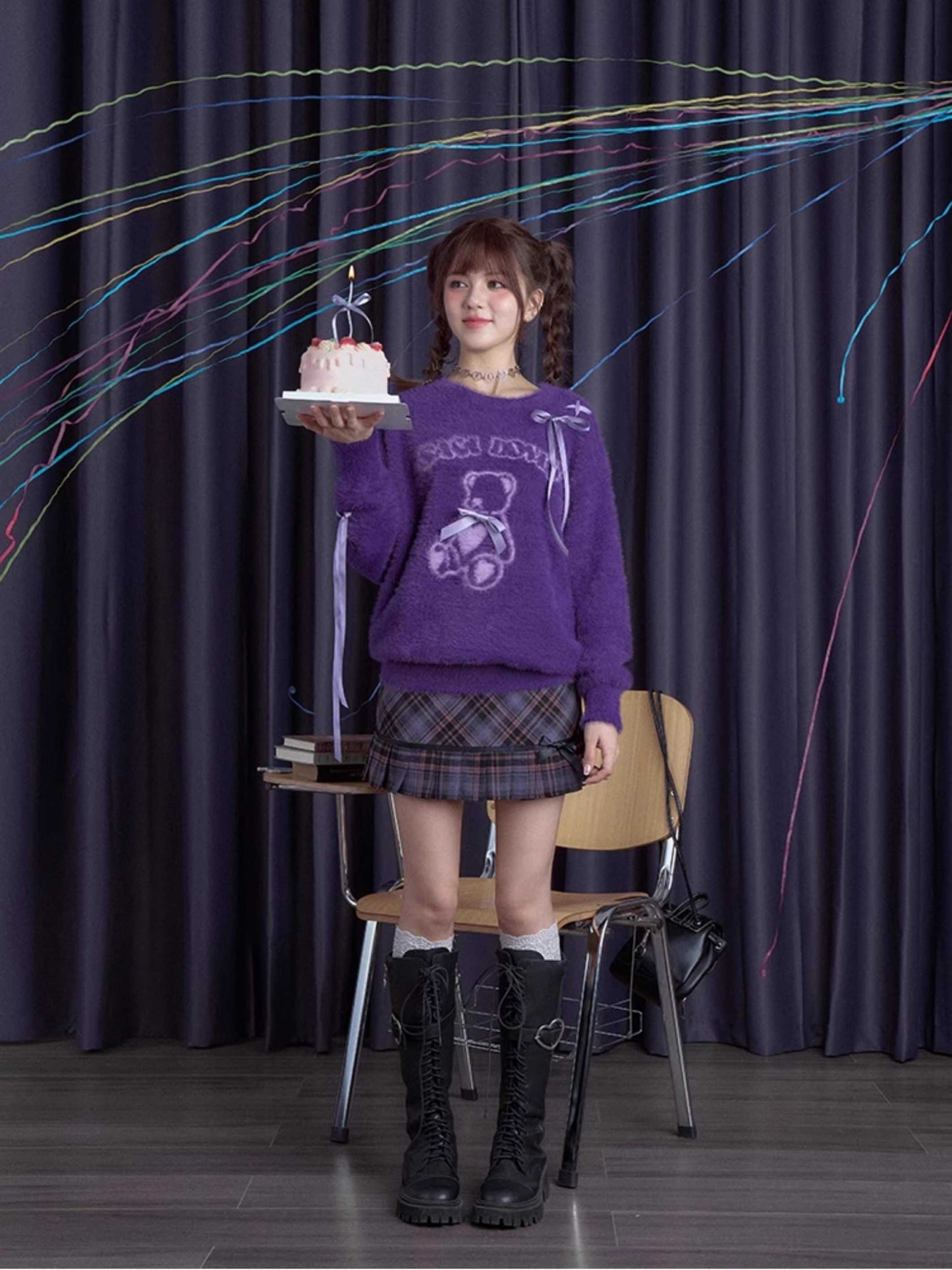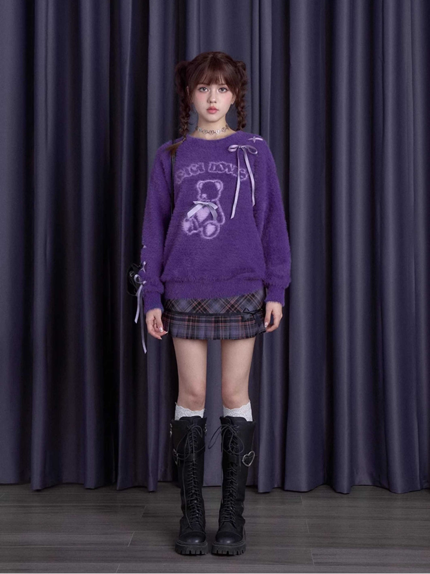 Purple bear ribbon sweater【s0000010666】