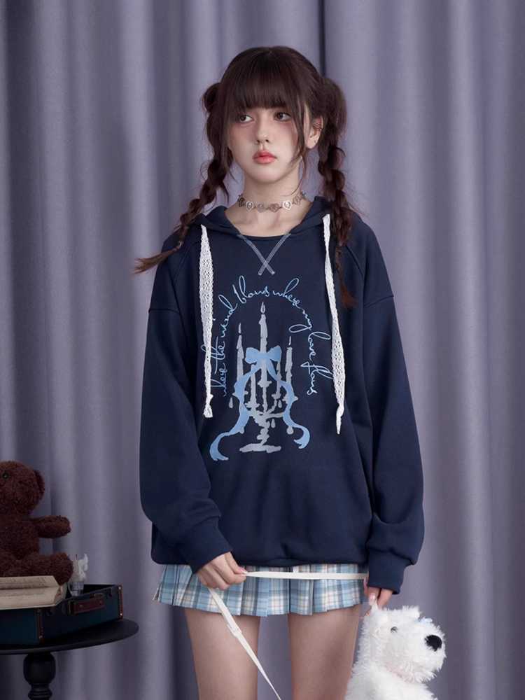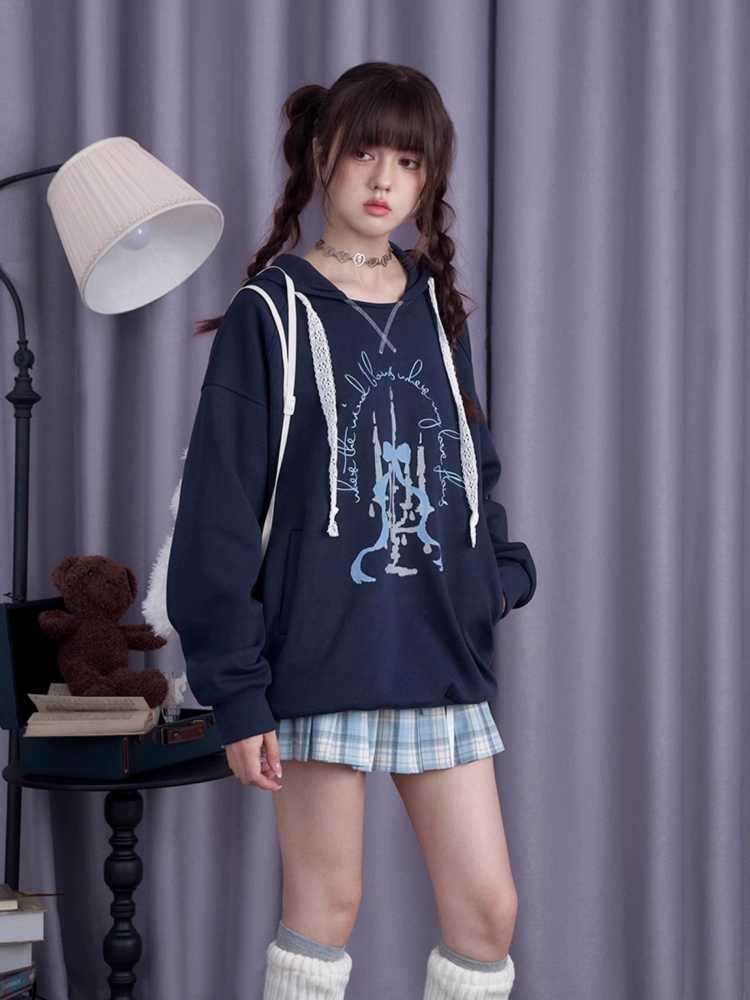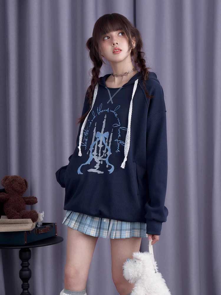 Printed hooded long sleeve casual sweatshirt【s0000010690】
