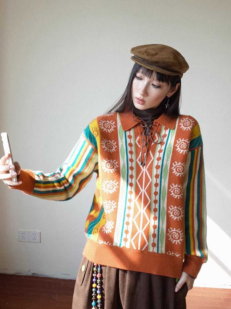 V-neck retro sweater【s0000010710】
