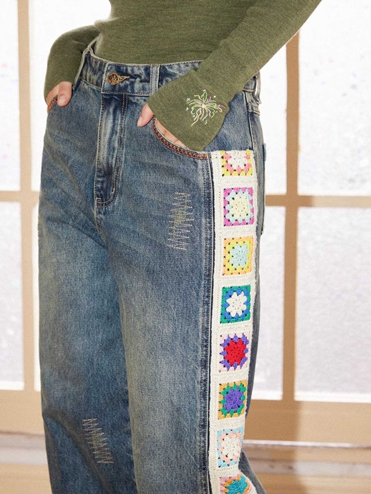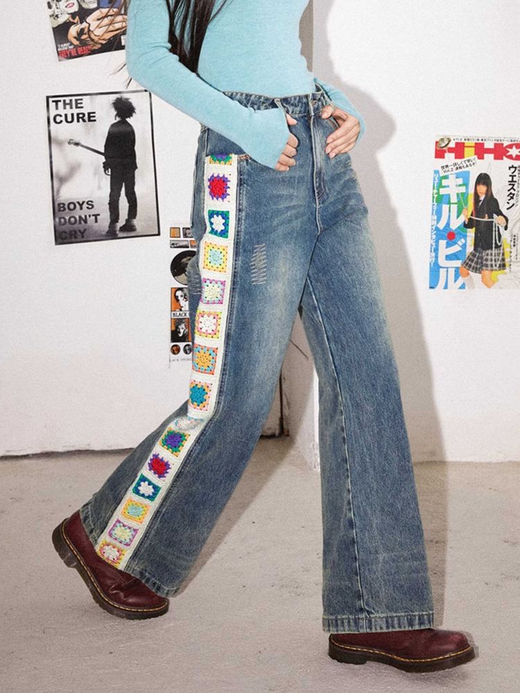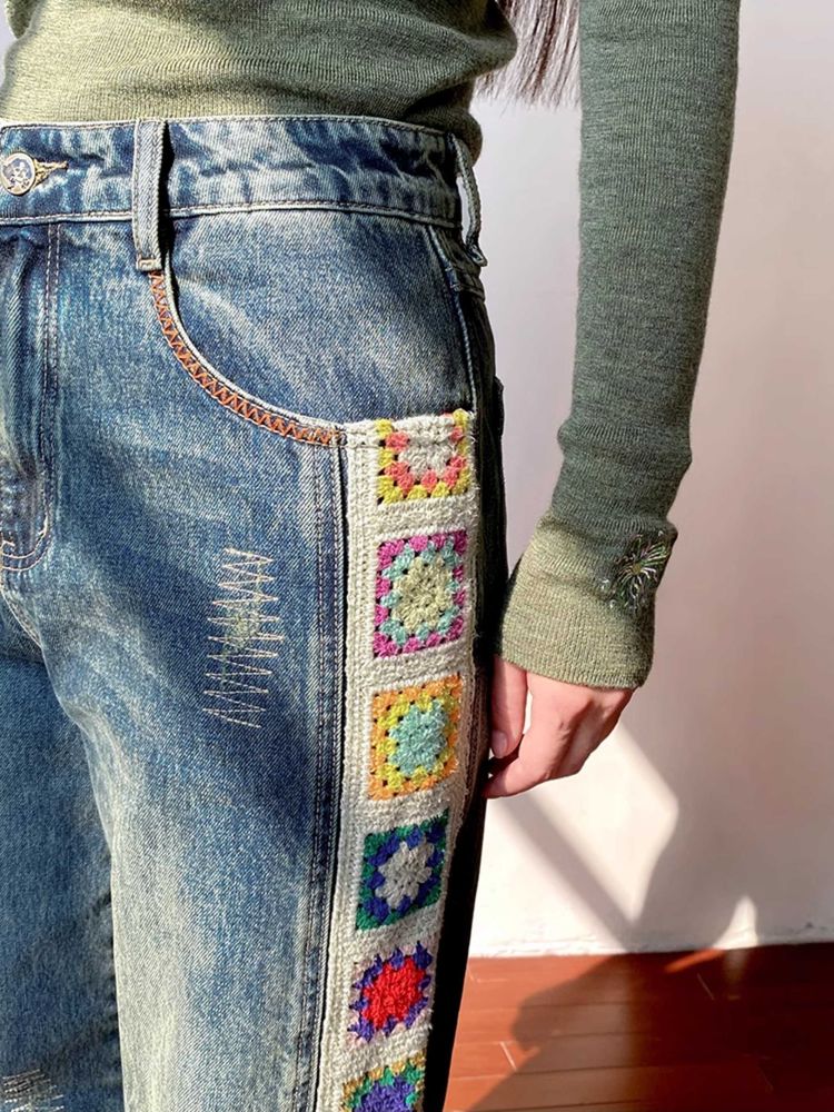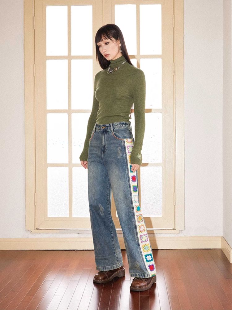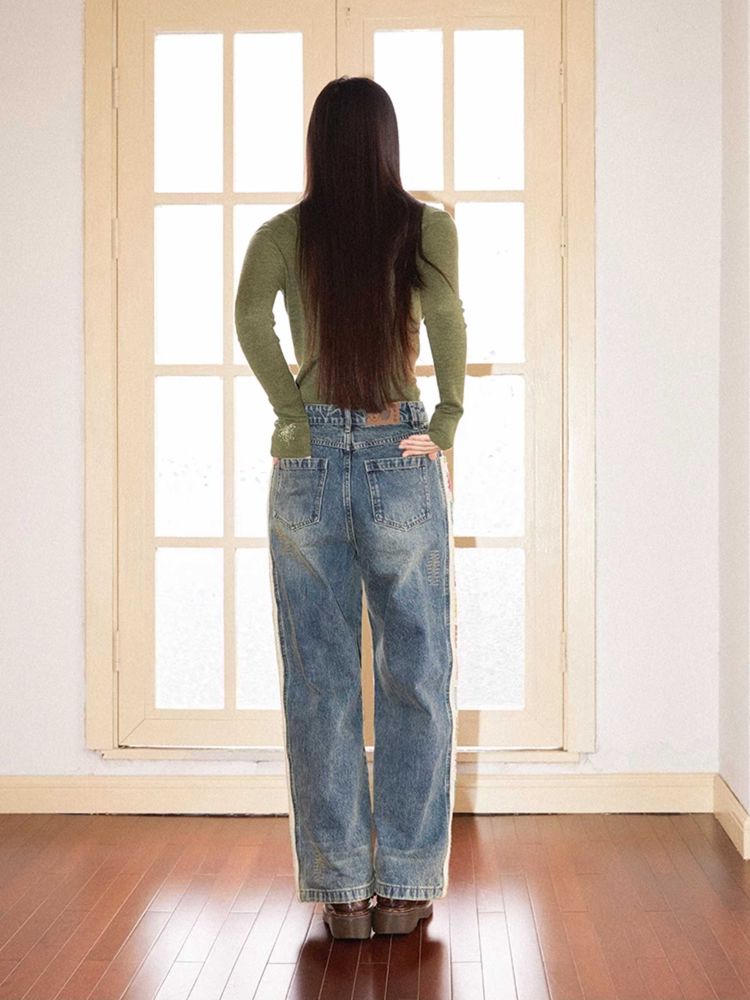 Patchwork design retro straight jeans【s0000010713】