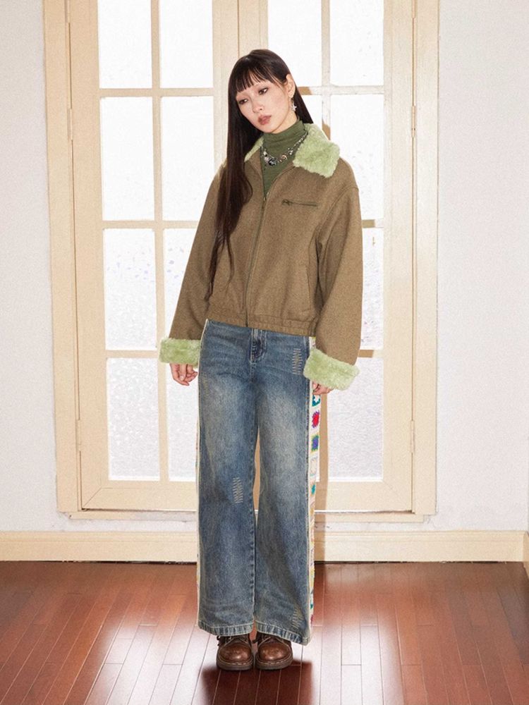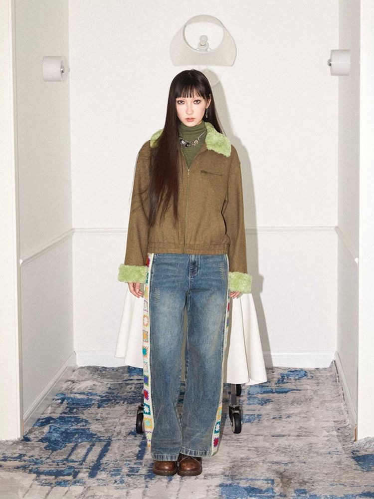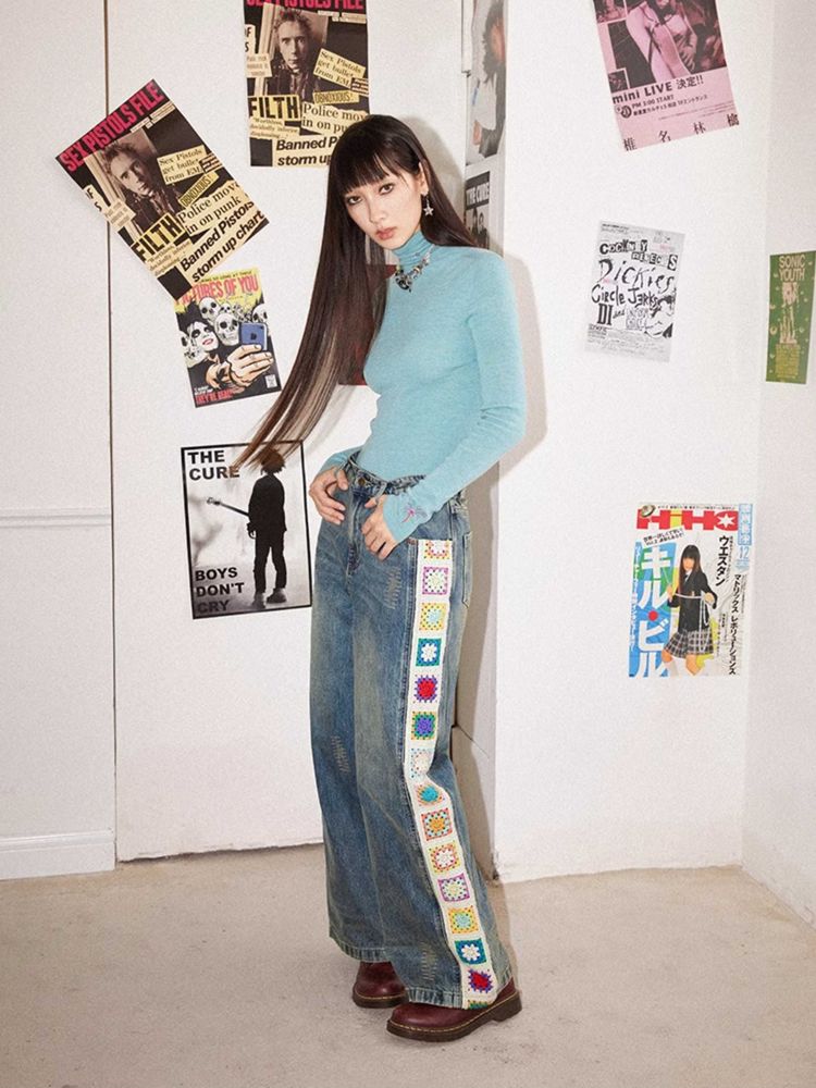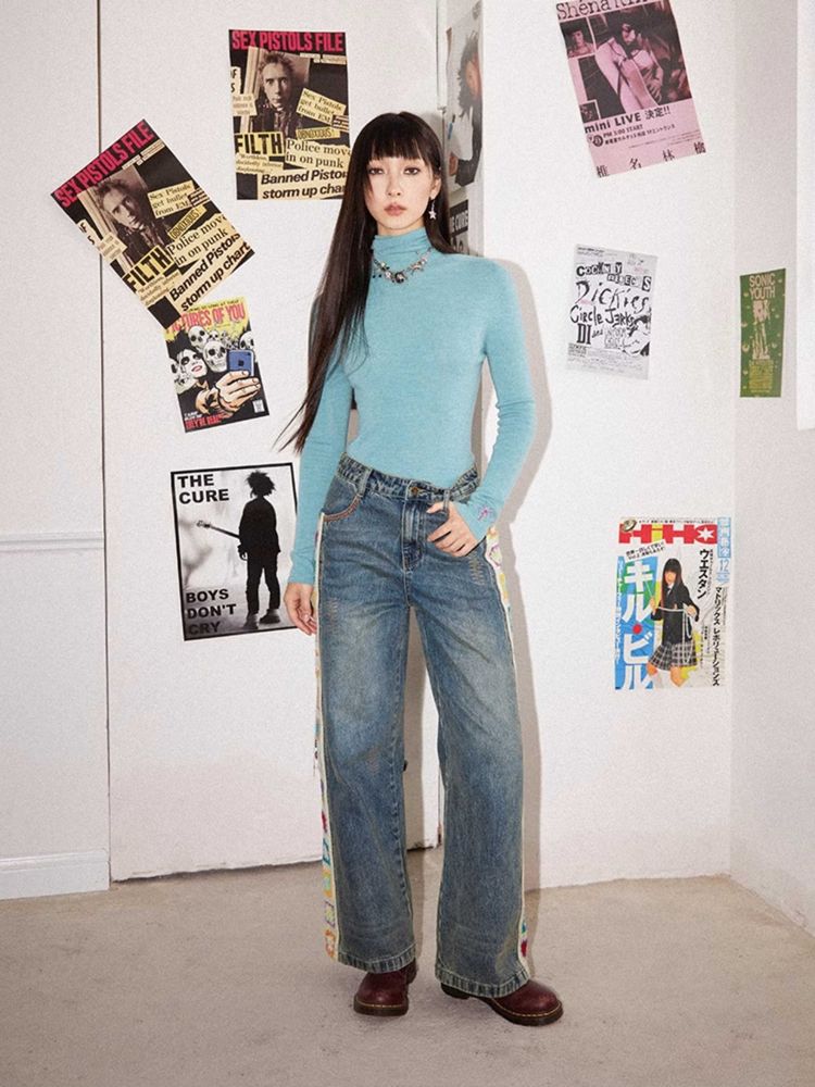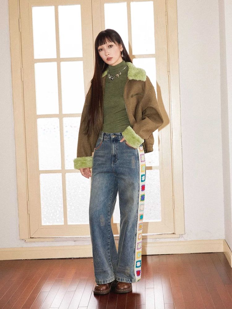 Patchwork design retro straight jeans【s0000010713】