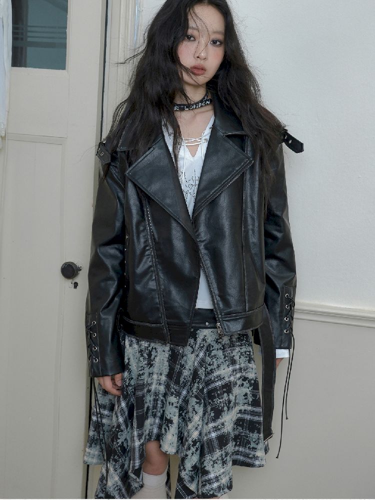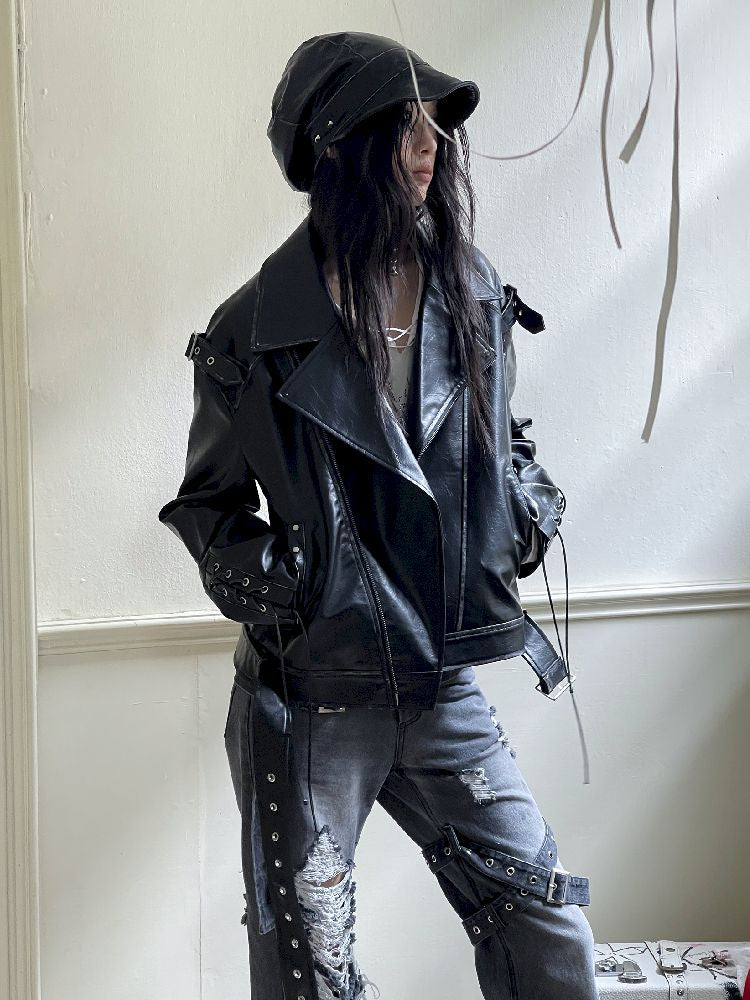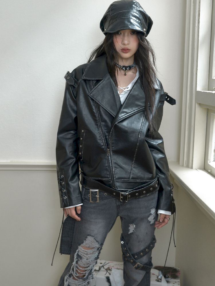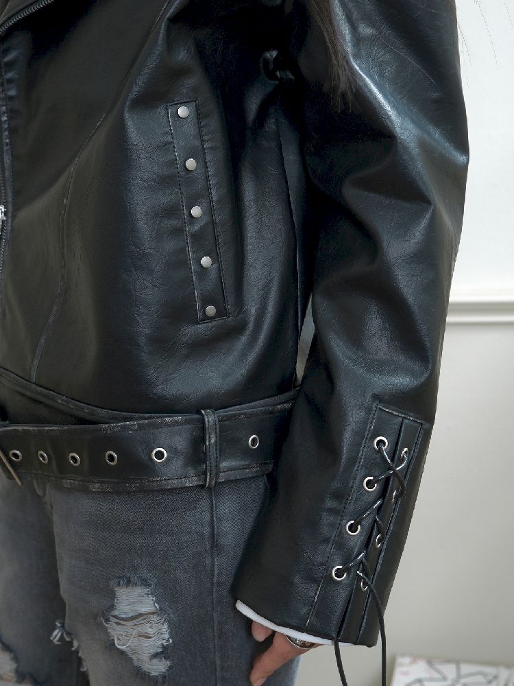 Drop Shoulder Tie Loose Biker Coat【s0000010717】