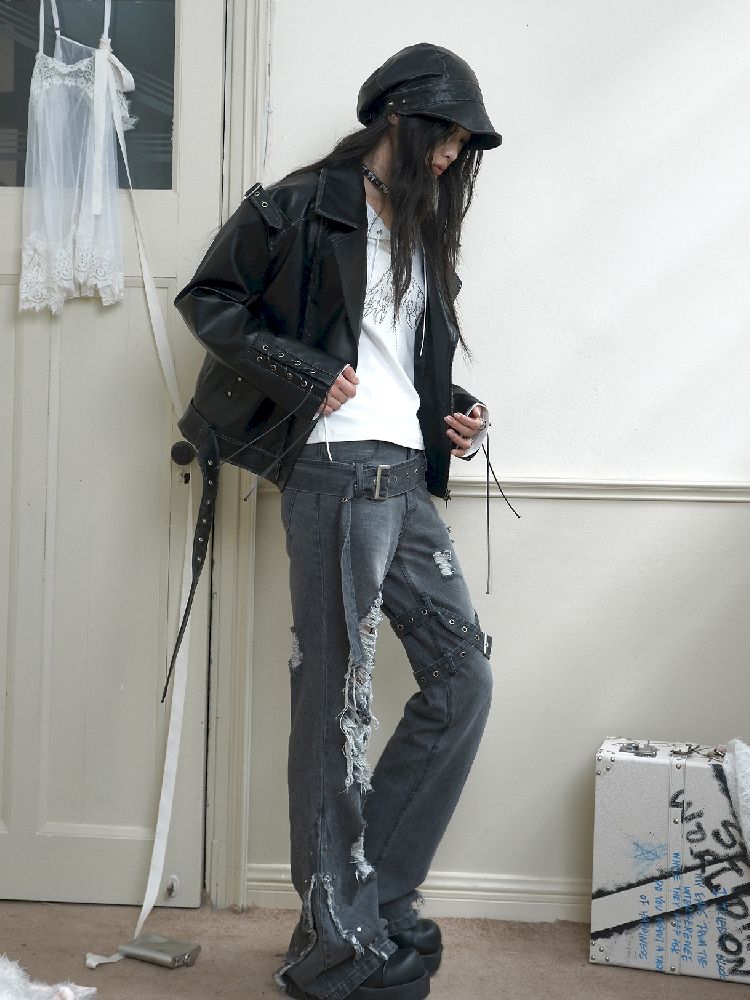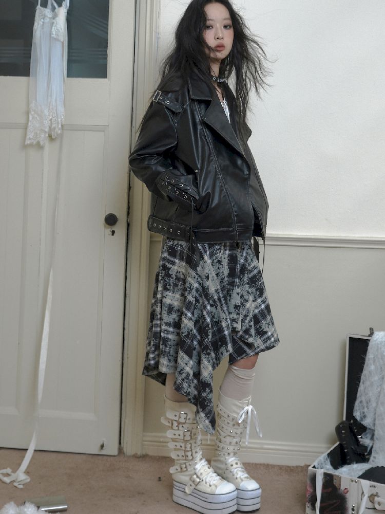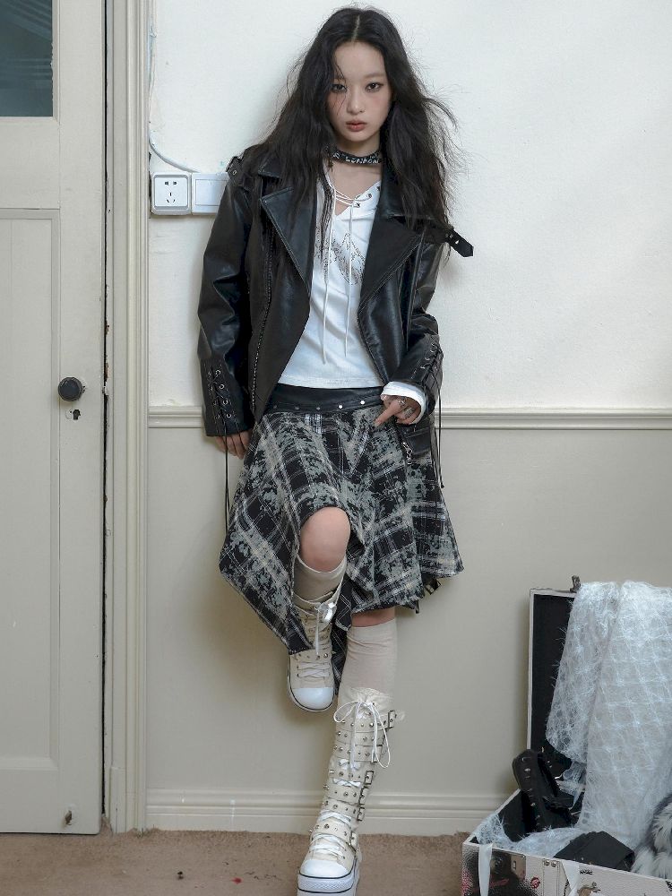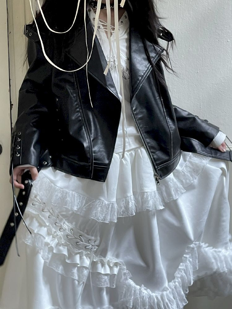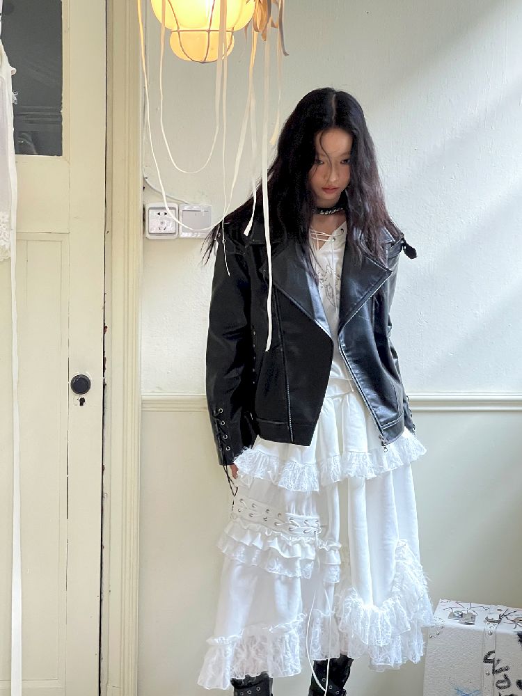 Drop Shoulder Tie Loose Biker Coat【s0000010717】