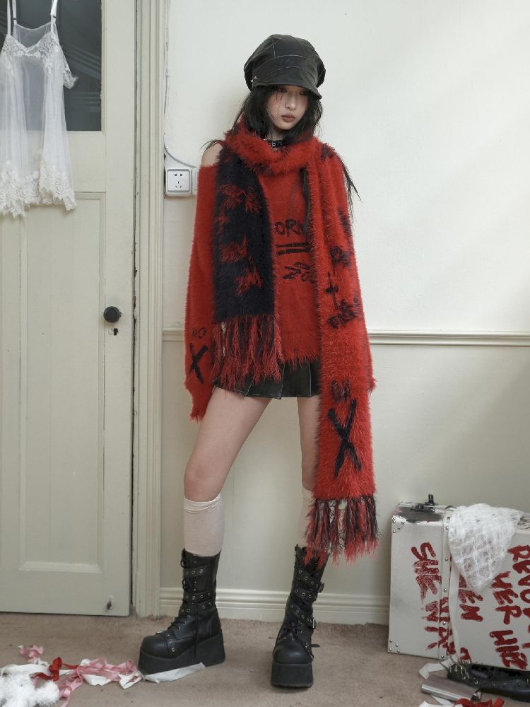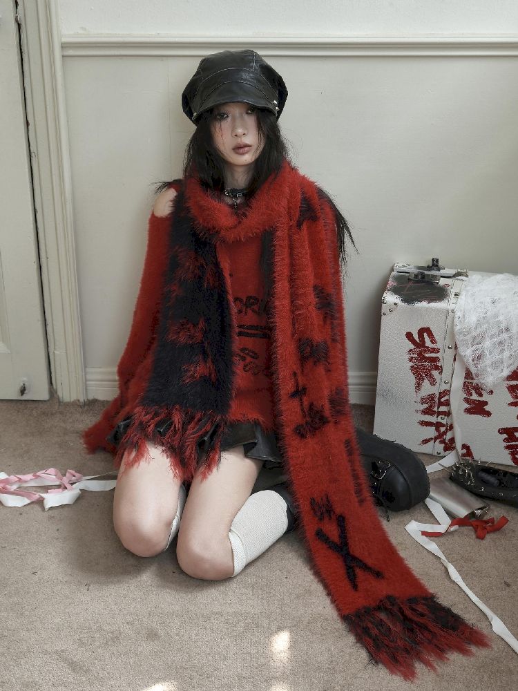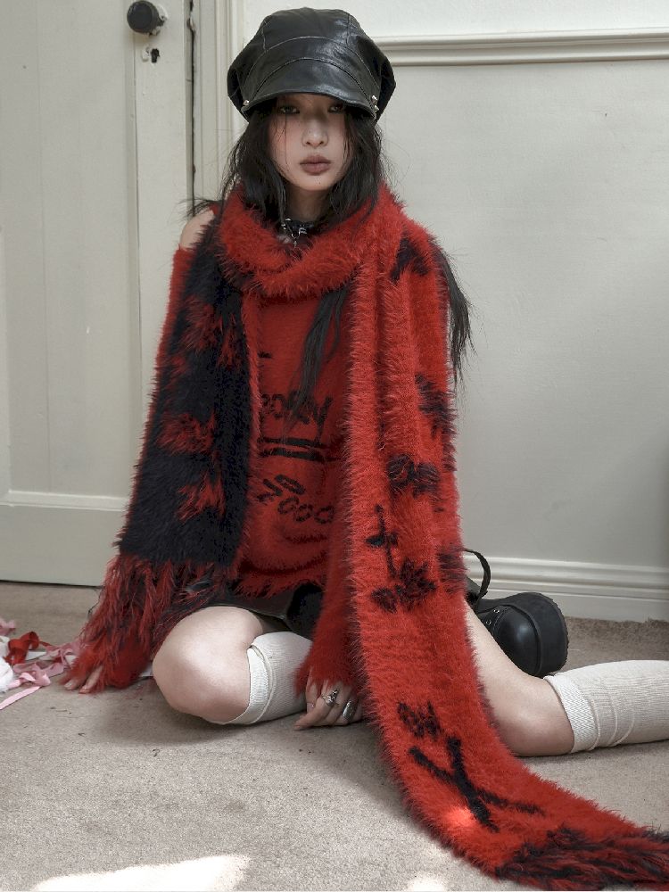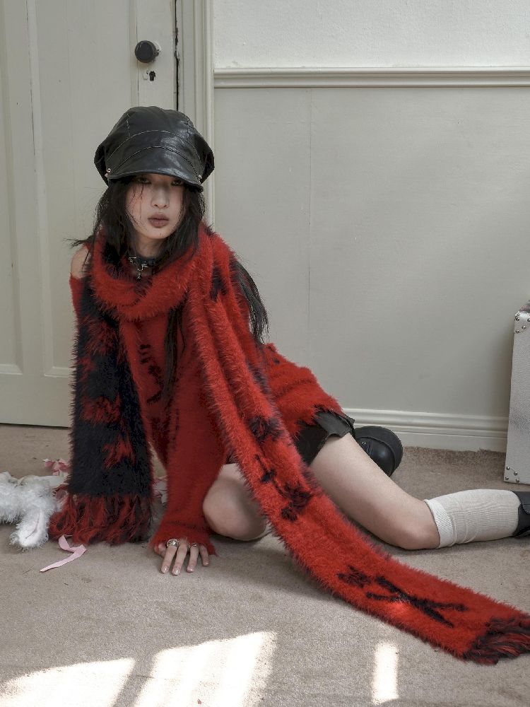 Reversible Knitted Red Scarf【s0000010725】