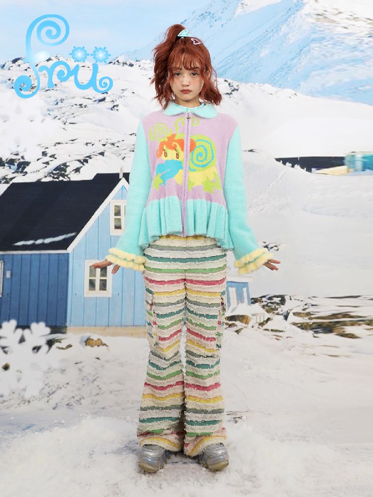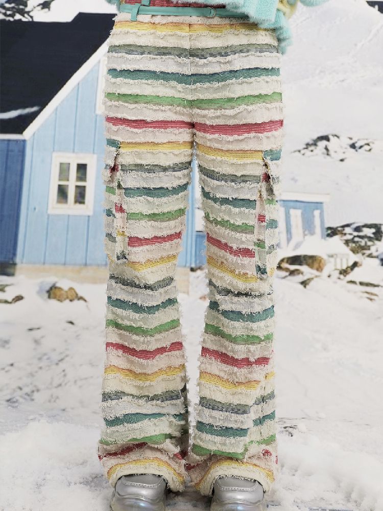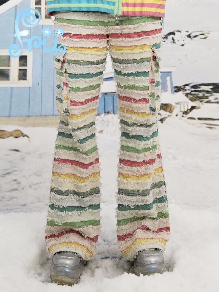 Colorblocking Casual Peplum Striped Jeans【s0000010733】