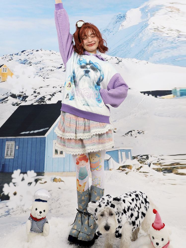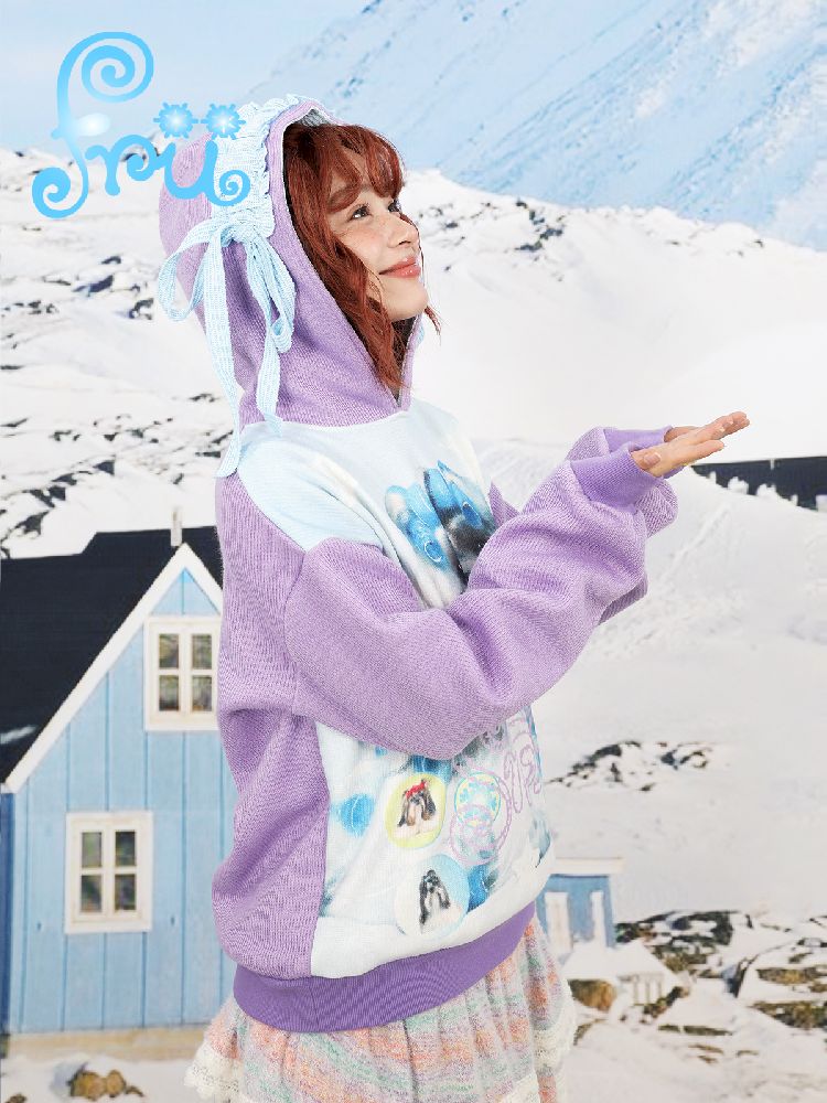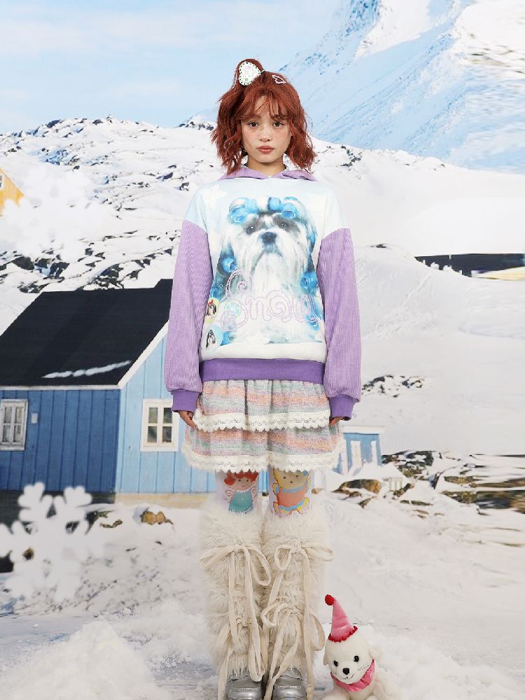 Dog Printed Loose Hooded Sweatshirt【s0000010734】