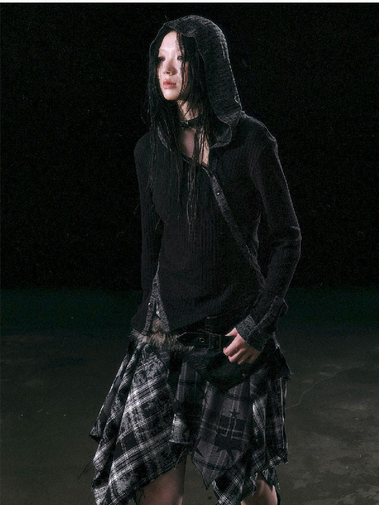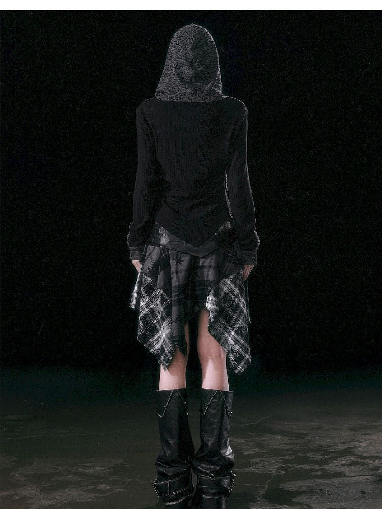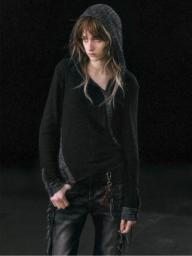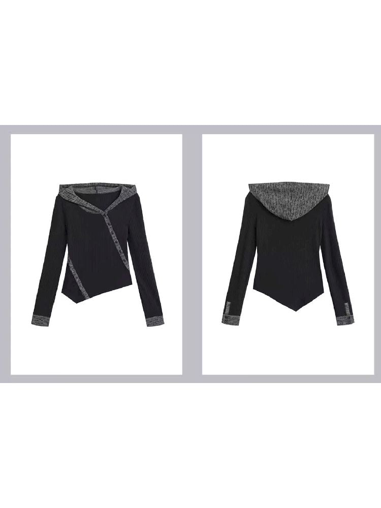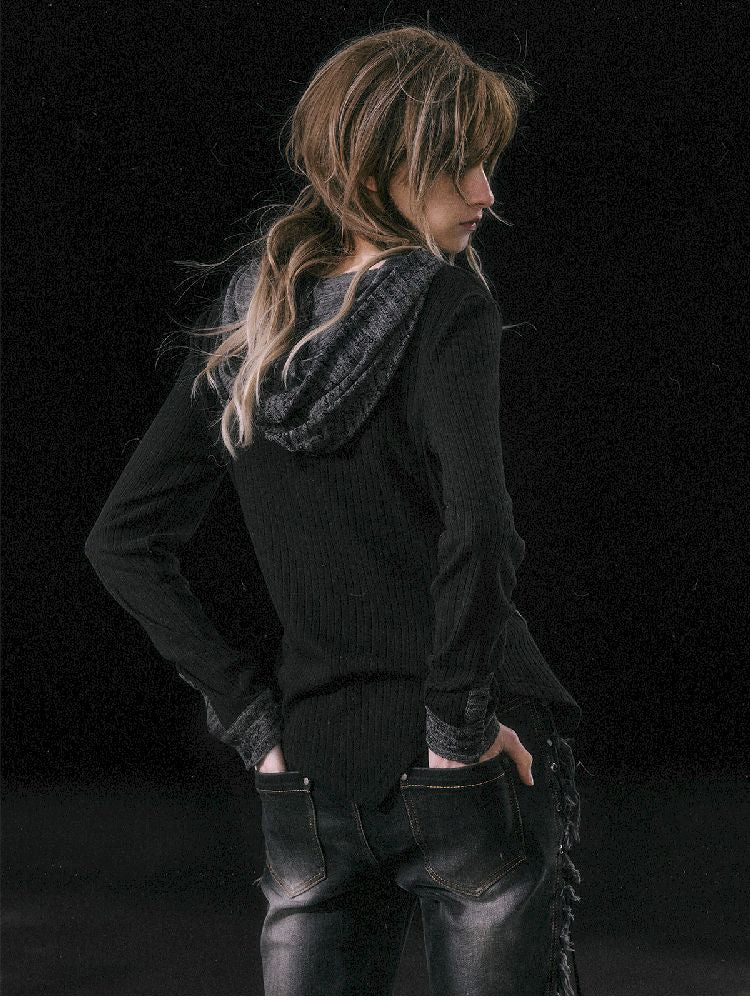 Knitted Hooded Slim Long Sleeve Top【s0000010755】