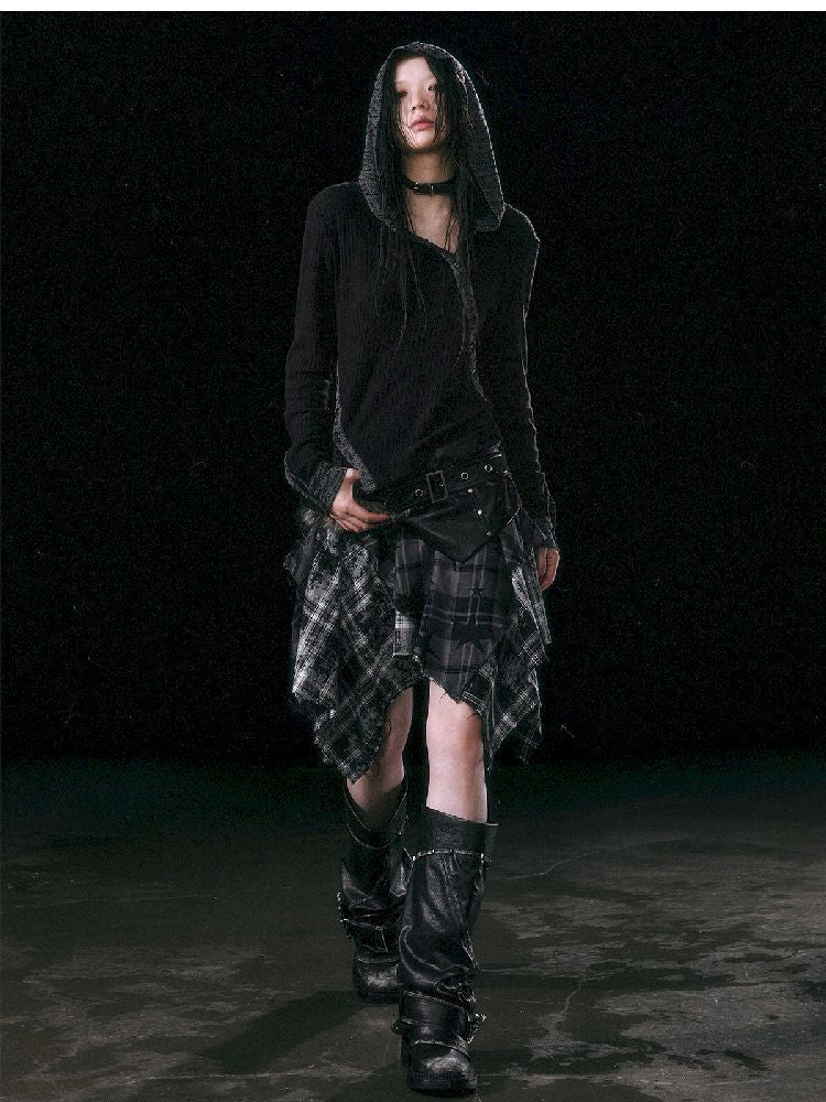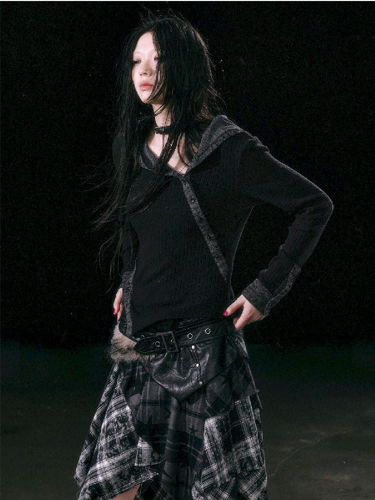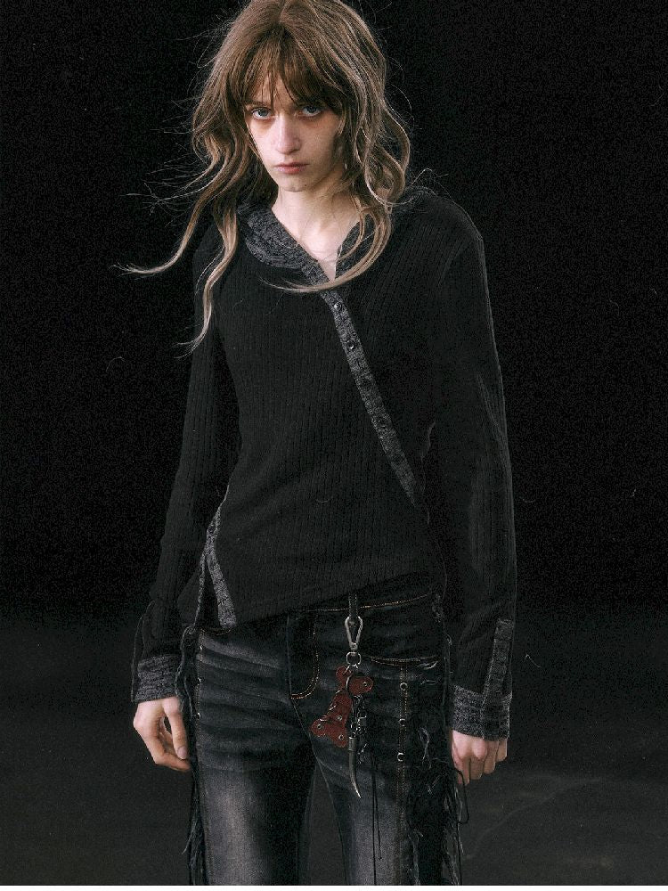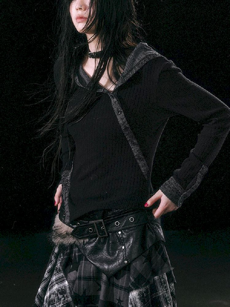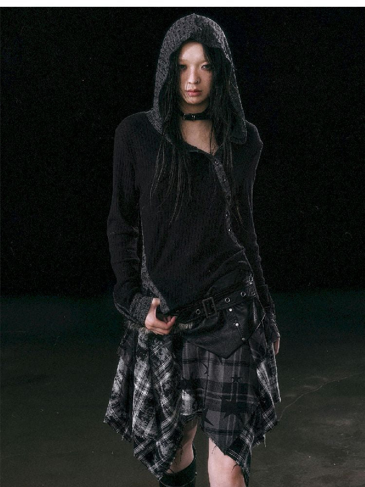 Knitted Hooded Slim Long Sleeve Top【s0000010755】