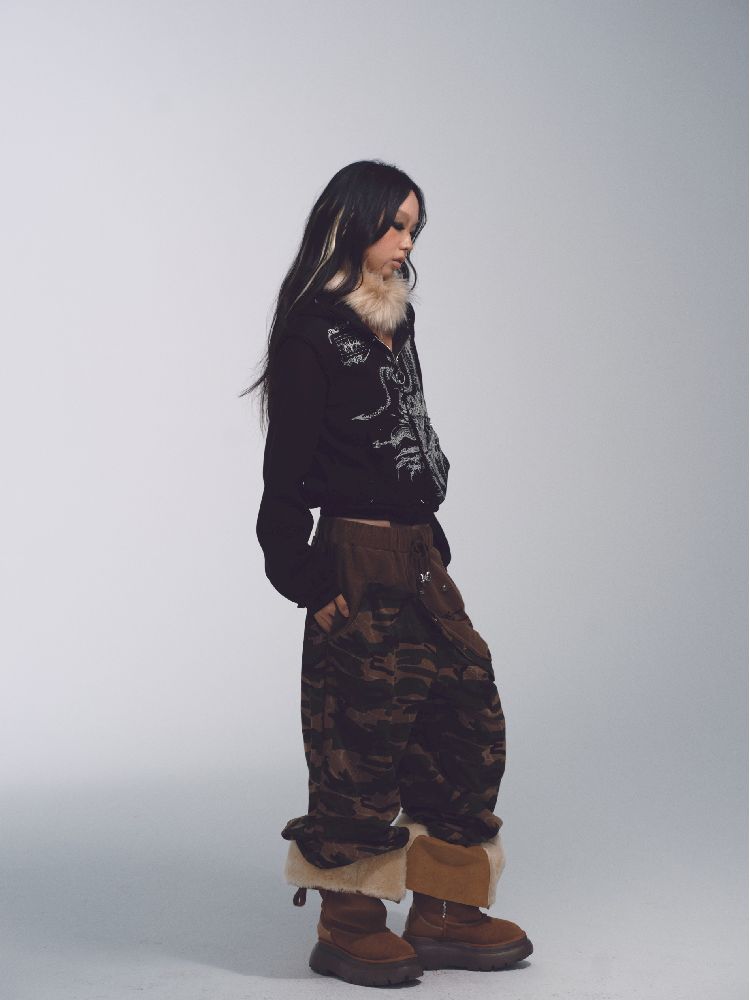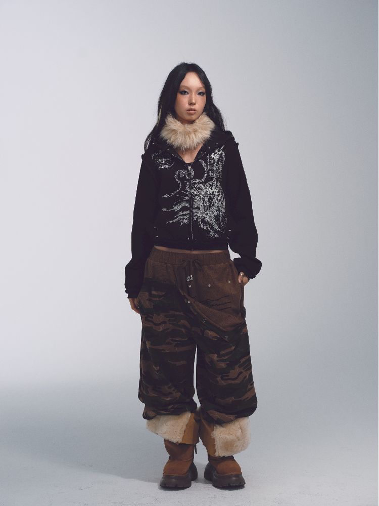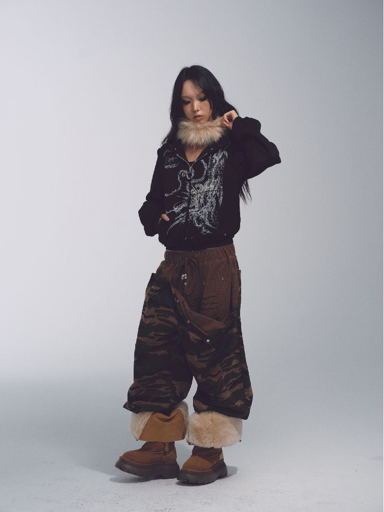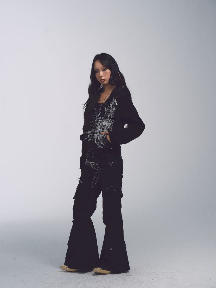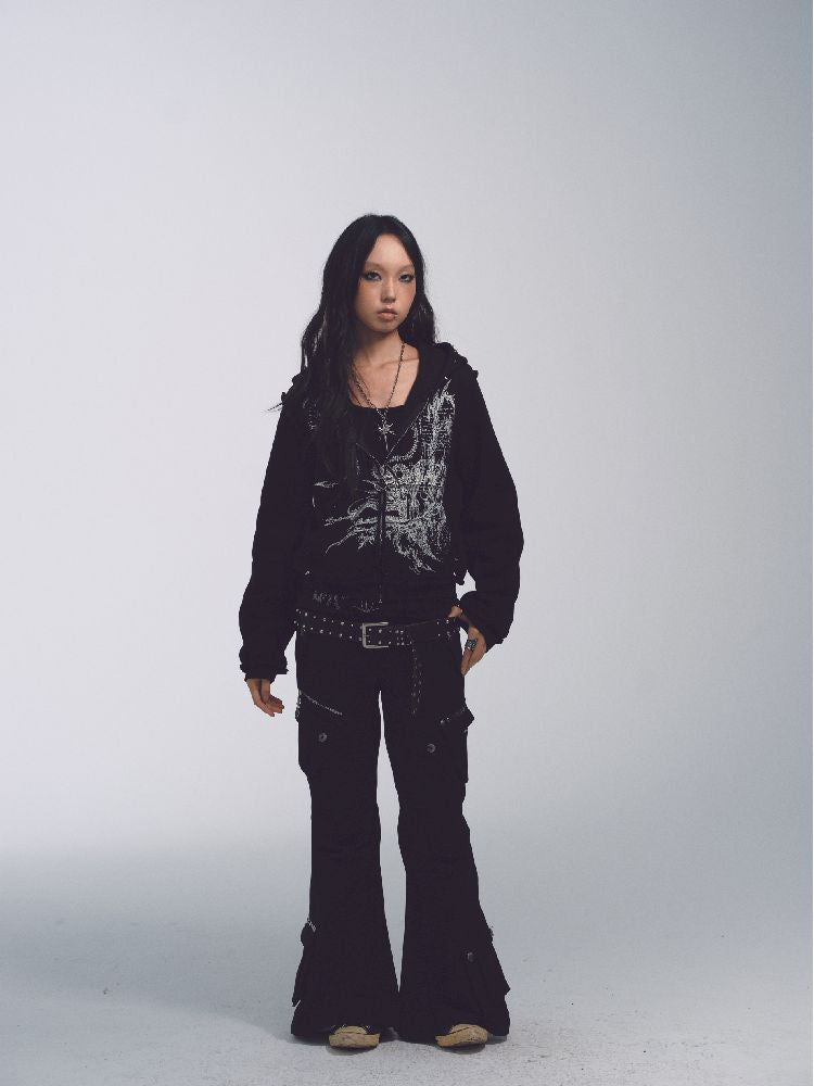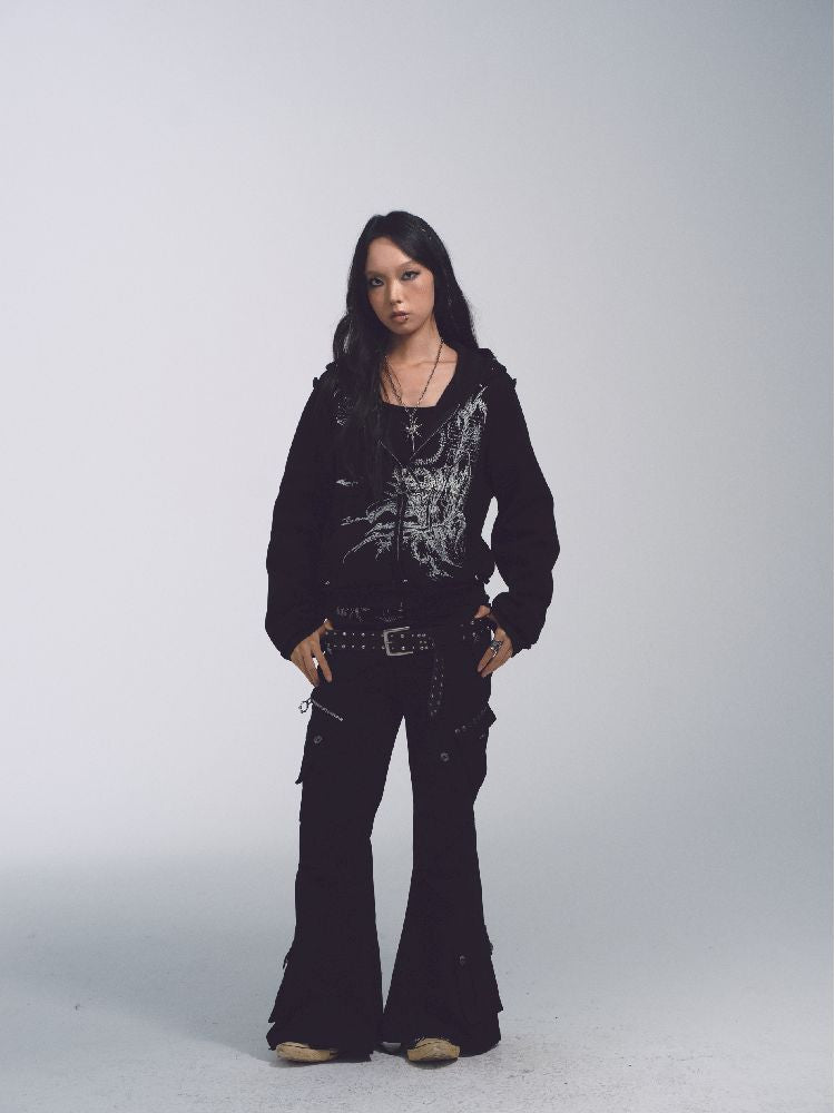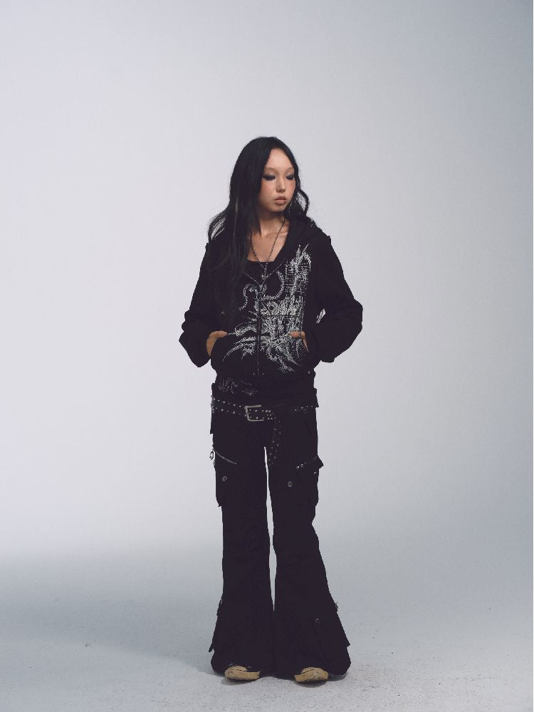 Printed Sweatshirt Studded Hoodie【s0000011232】