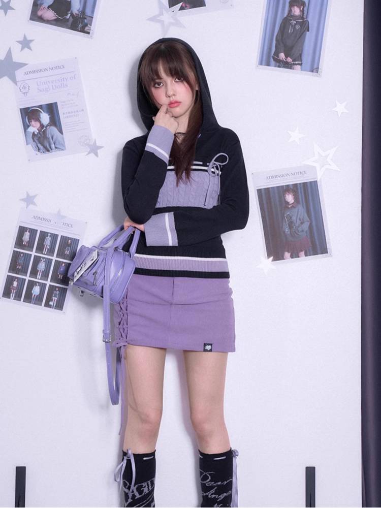 Hooded slim-fit knit sweater【s0000011287】