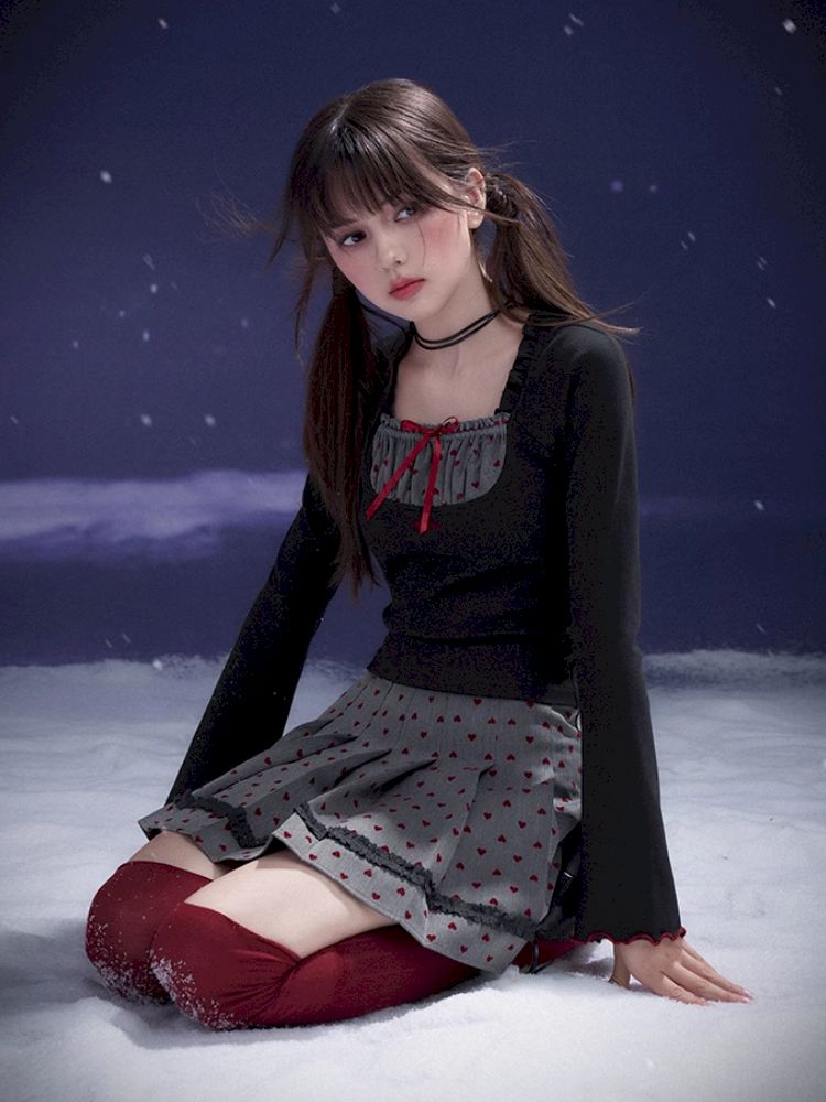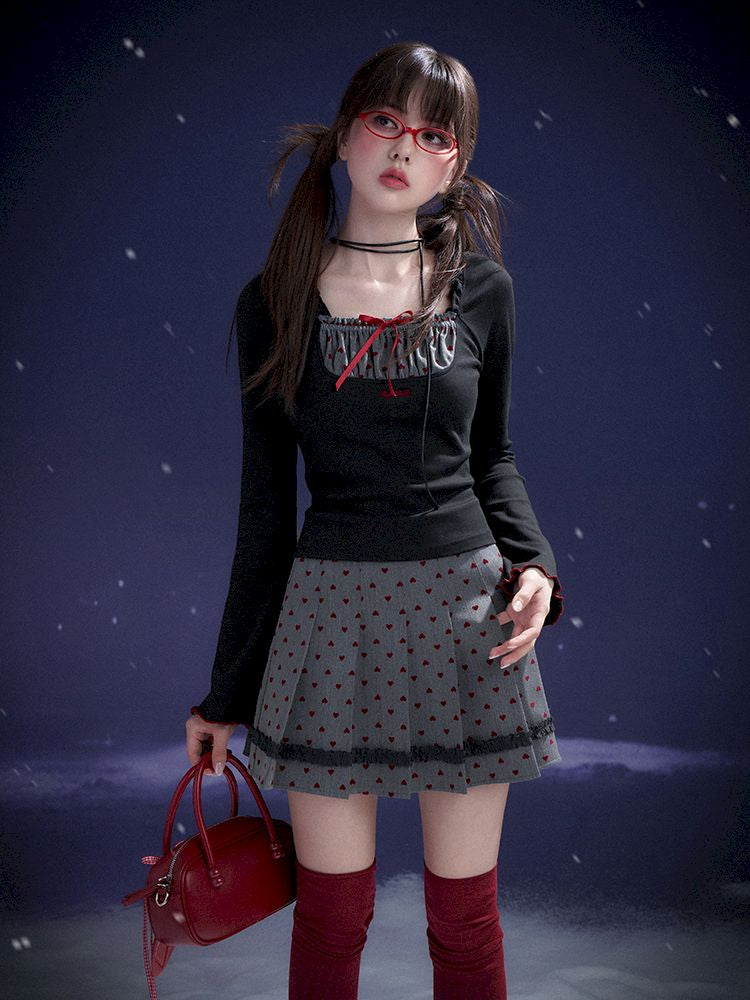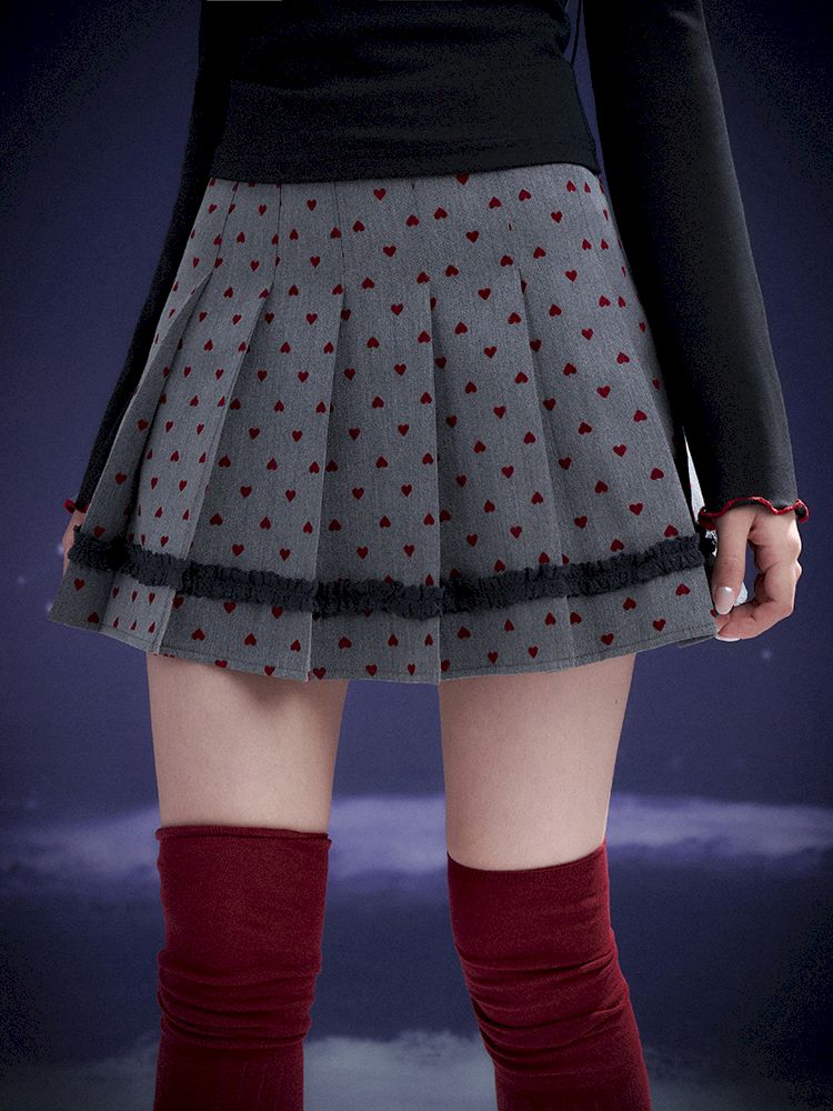 Flocked Sweetheart Pleated Skirt【s0000011658】