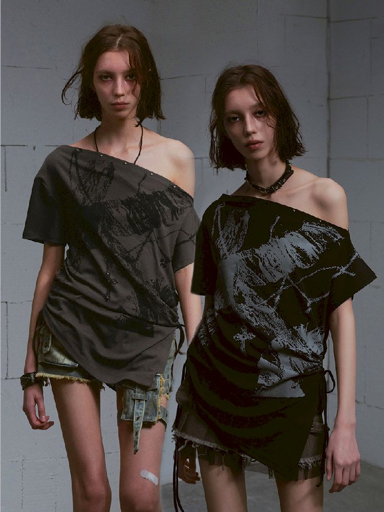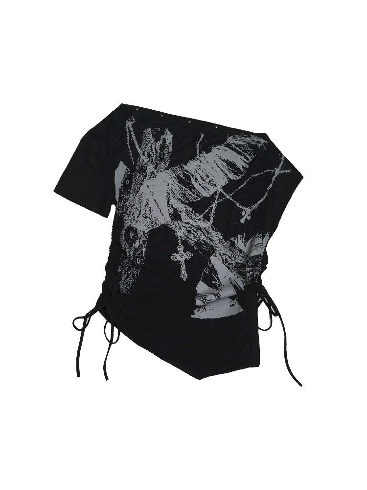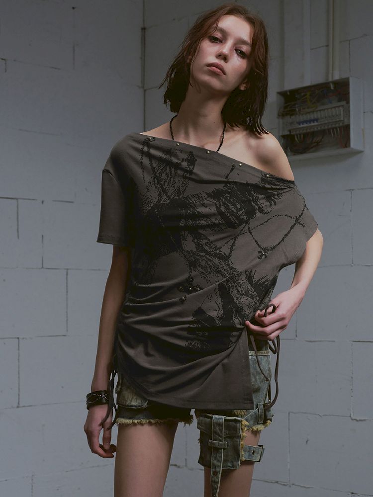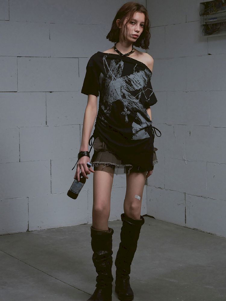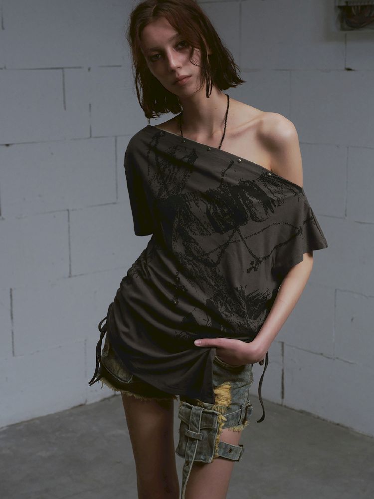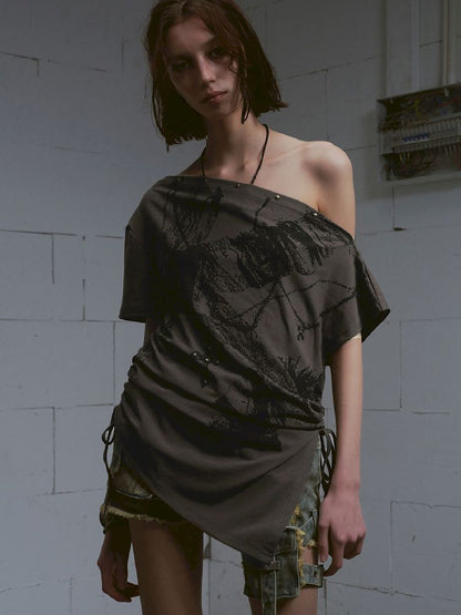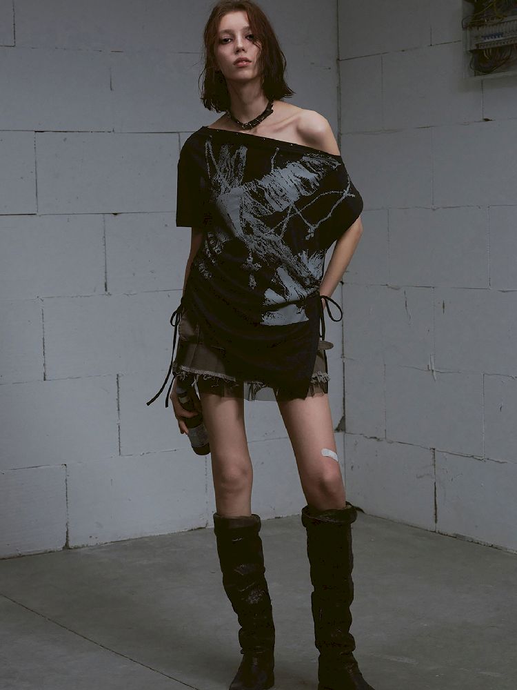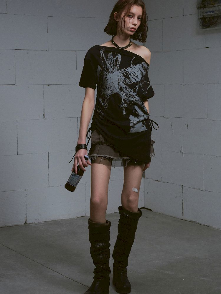 Oversize Diagonal Drawstring T-shirt【s0000012041】