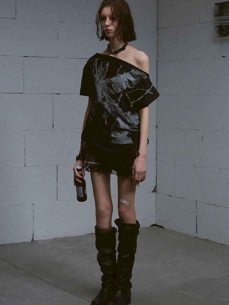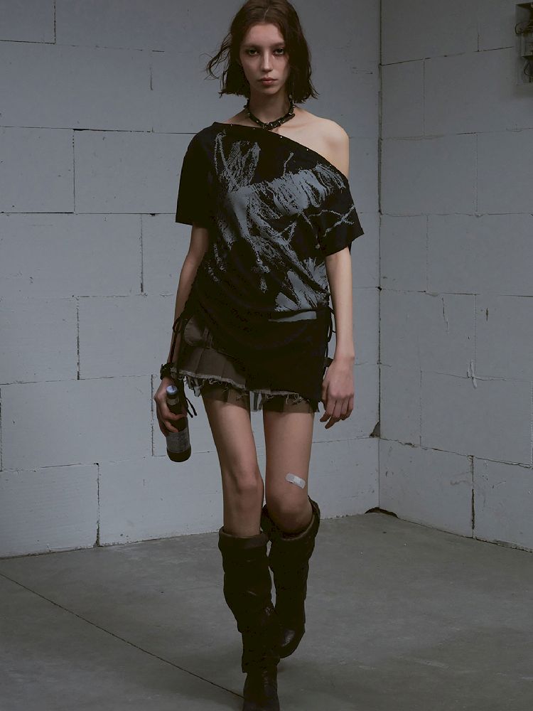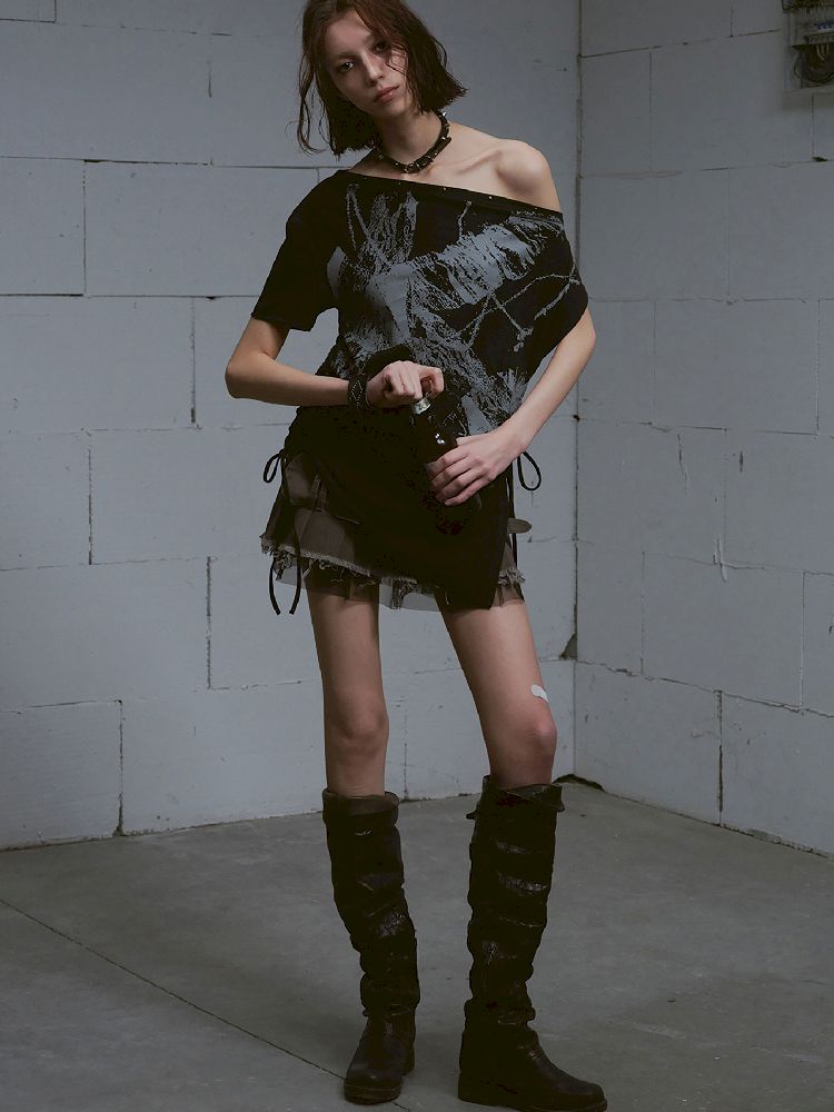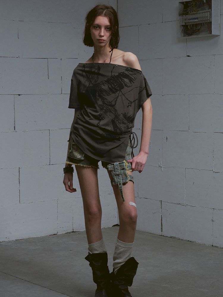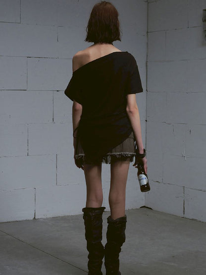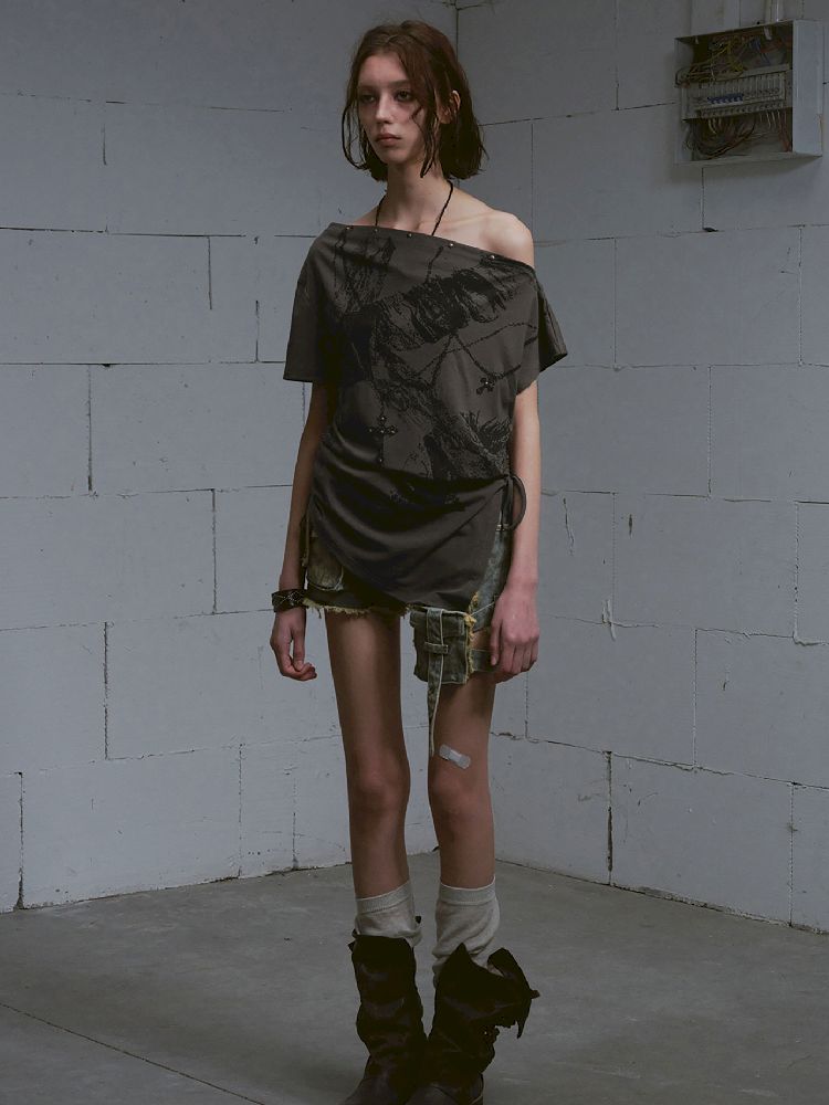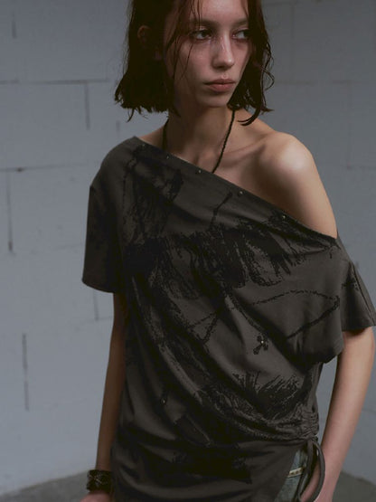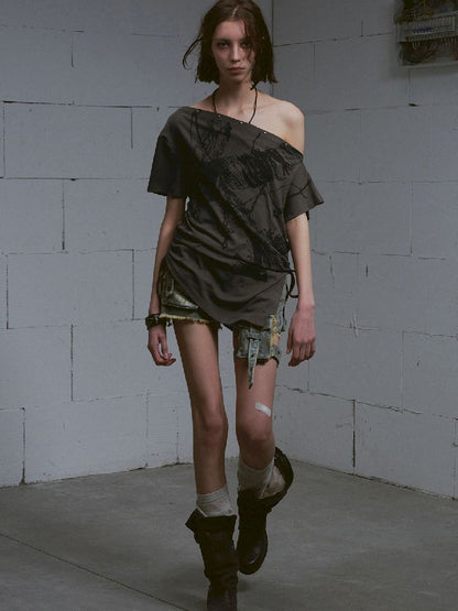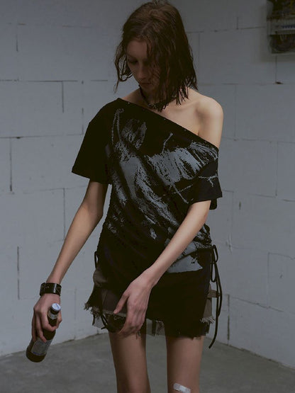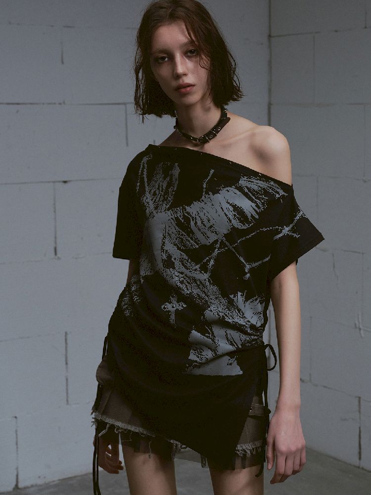 Oversize Diagonal Drawstring T-shirt【s0000012041】