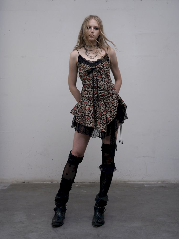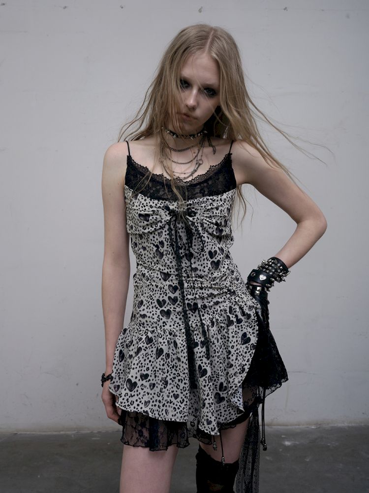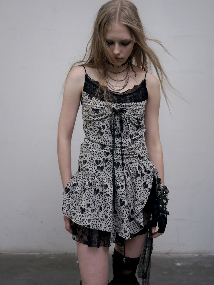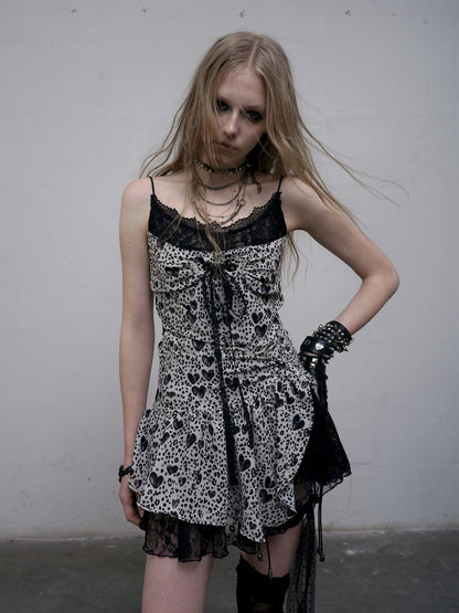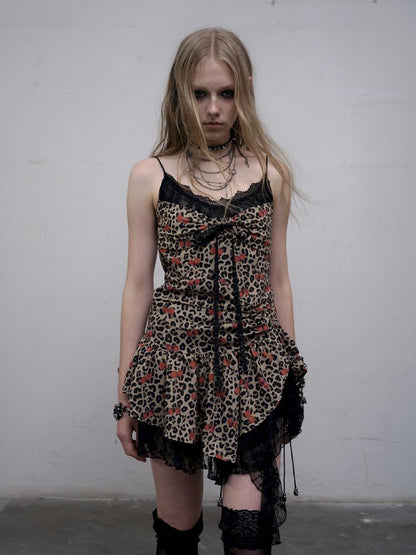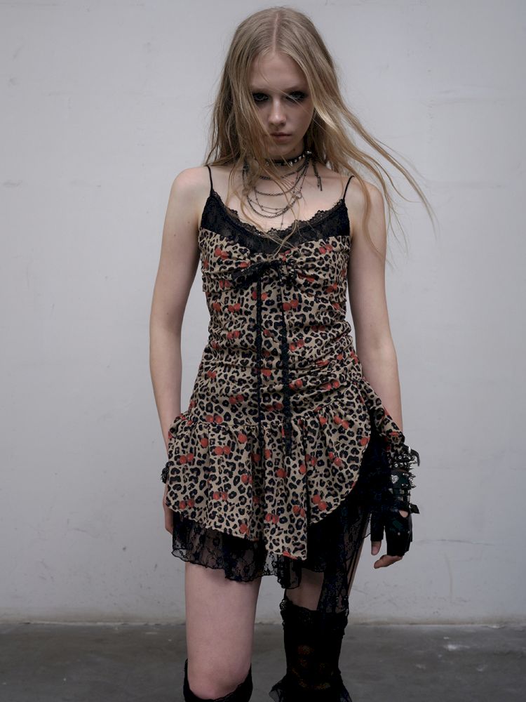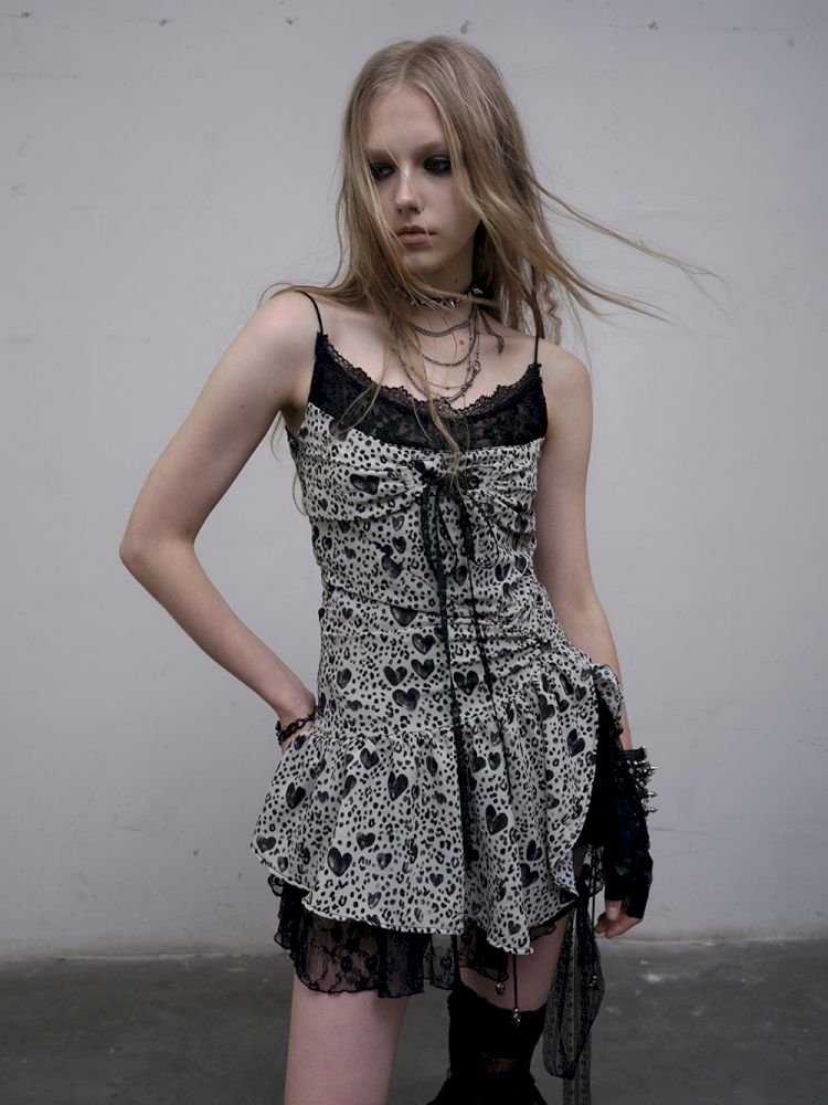 Leopard Heart Lace Splicing Skinny Halter Dress【s0000012325】