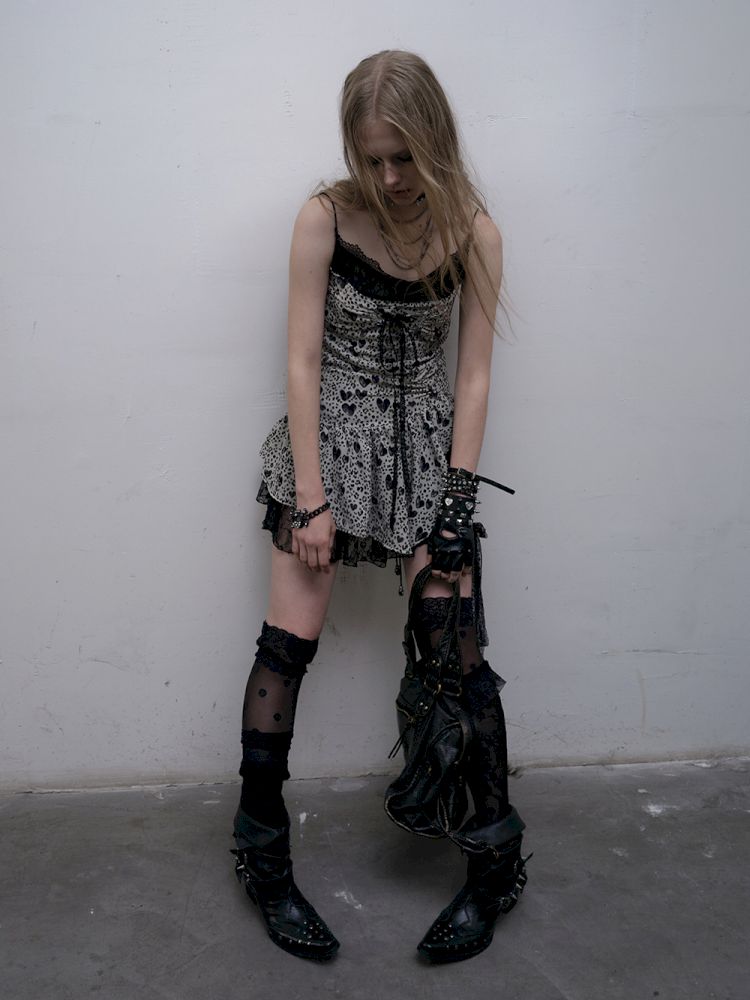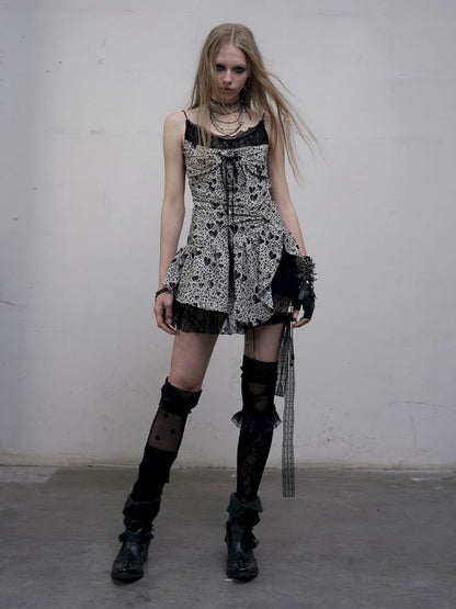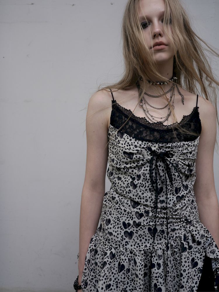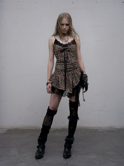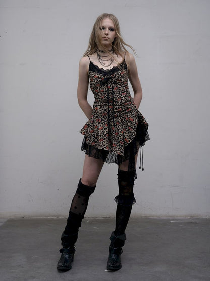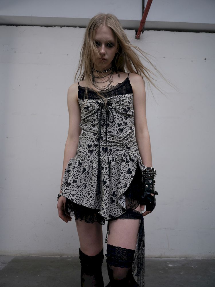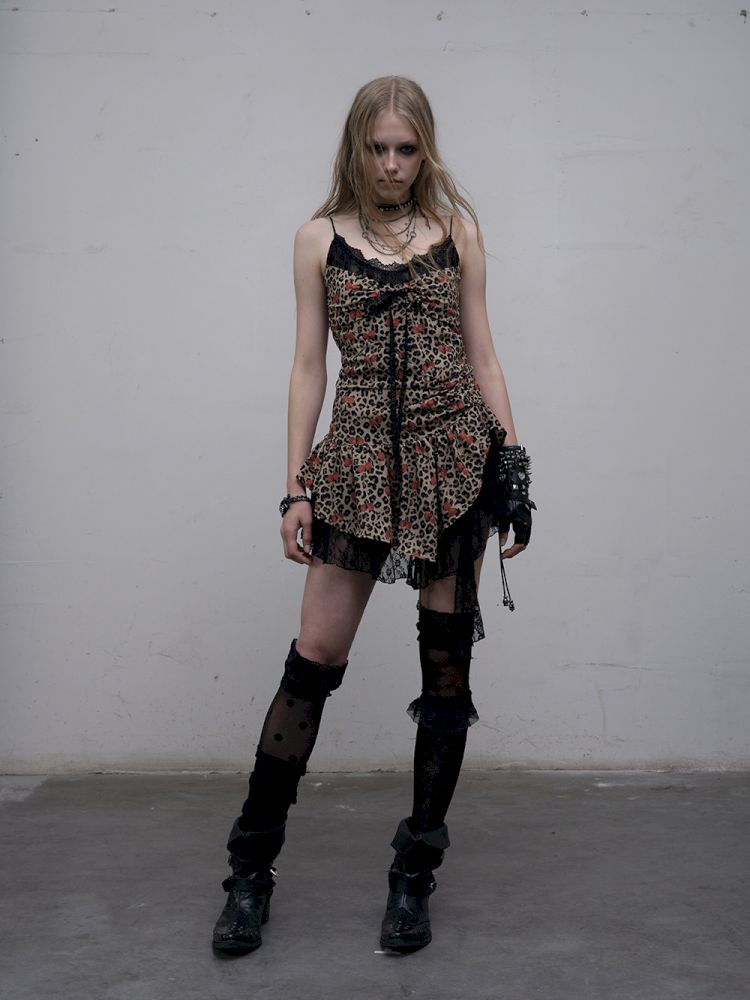 Leopard Heart Lace Splicing Skinny Halter Dress【s0000012325】