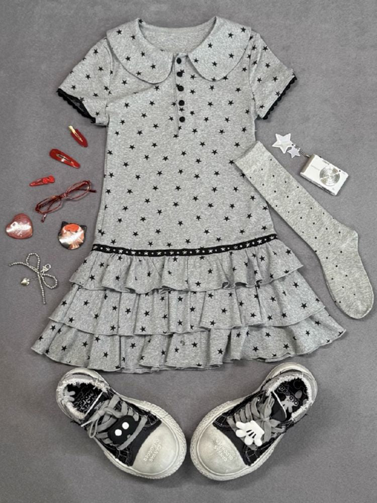 Puffy Layers Star Polo Neck Cake Dress【s0000012332】