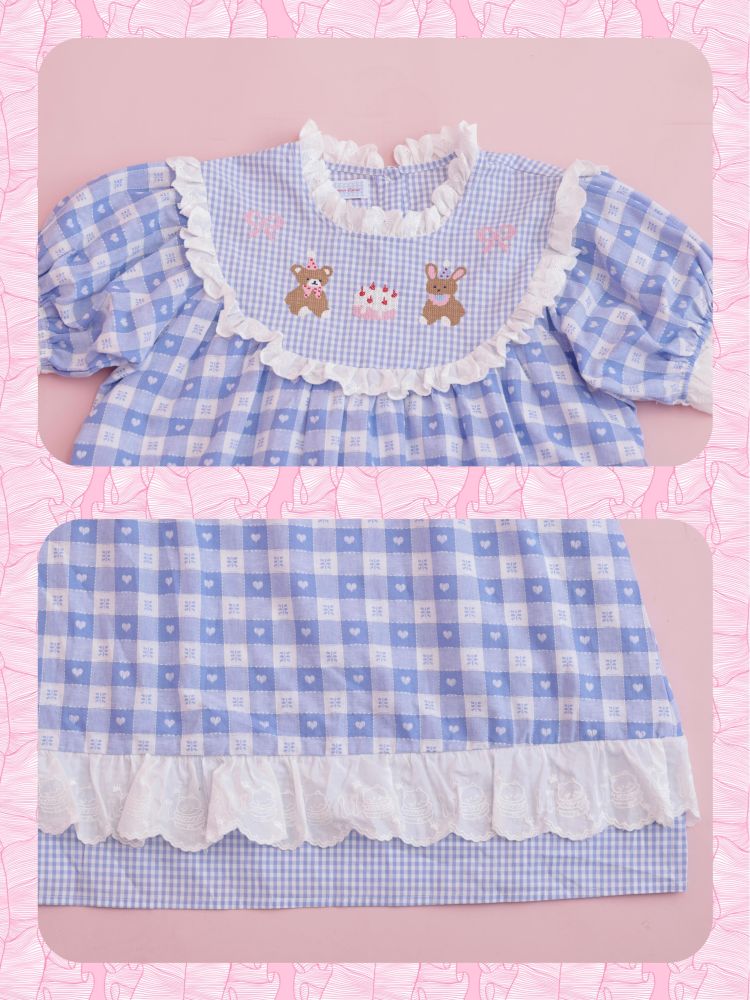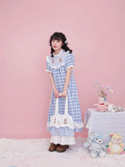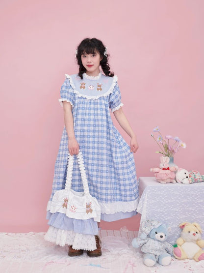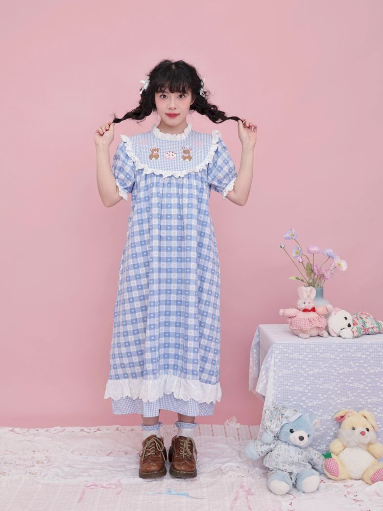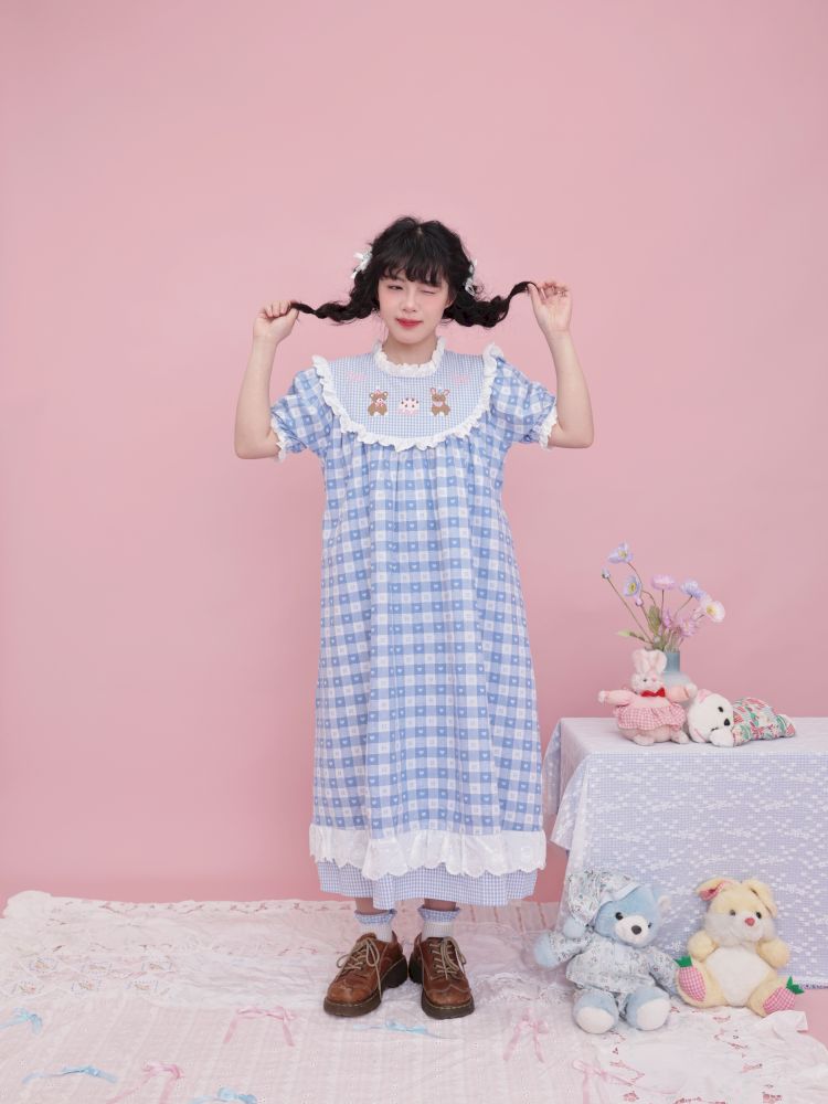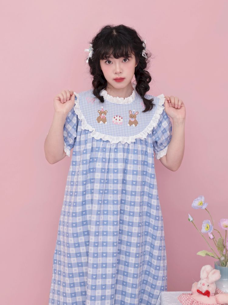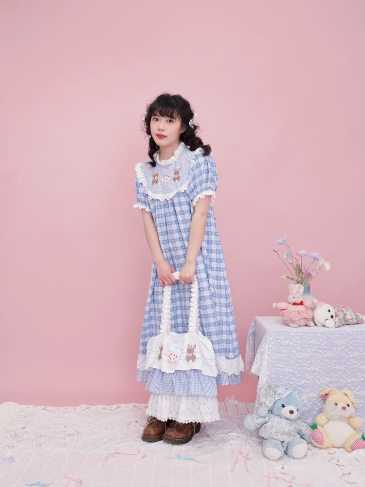 Embroidered Bubble Sleeve Dress【s0000012383】