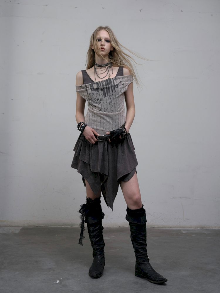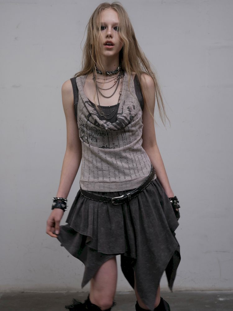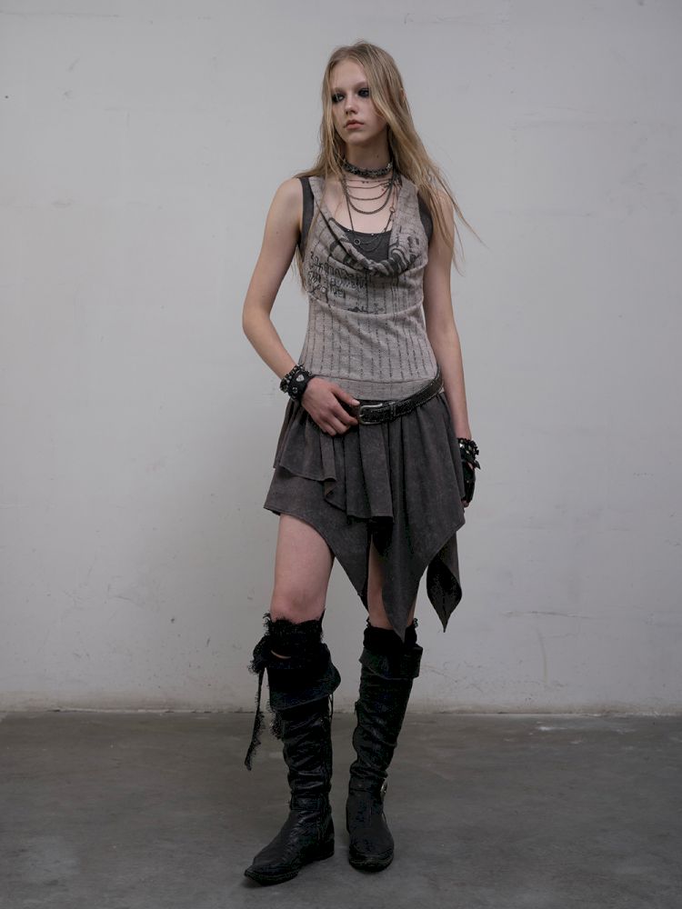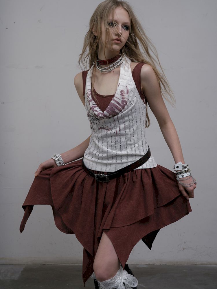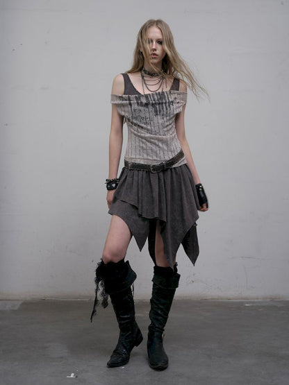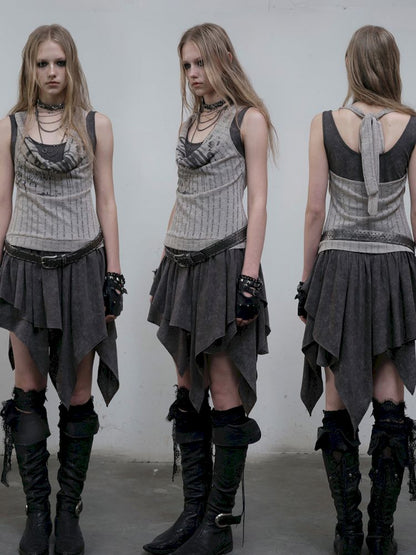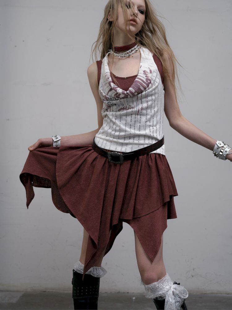 Irregular Fake Two Piece Neck Vest Dress【s0000012614】