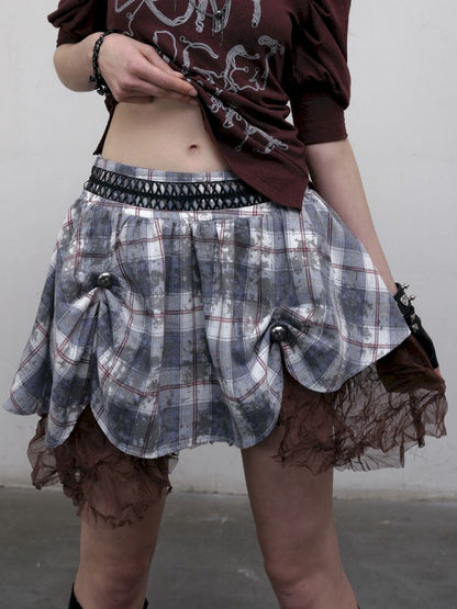Irregular Plaid Puffy Half-body Skirt【s0000012618】