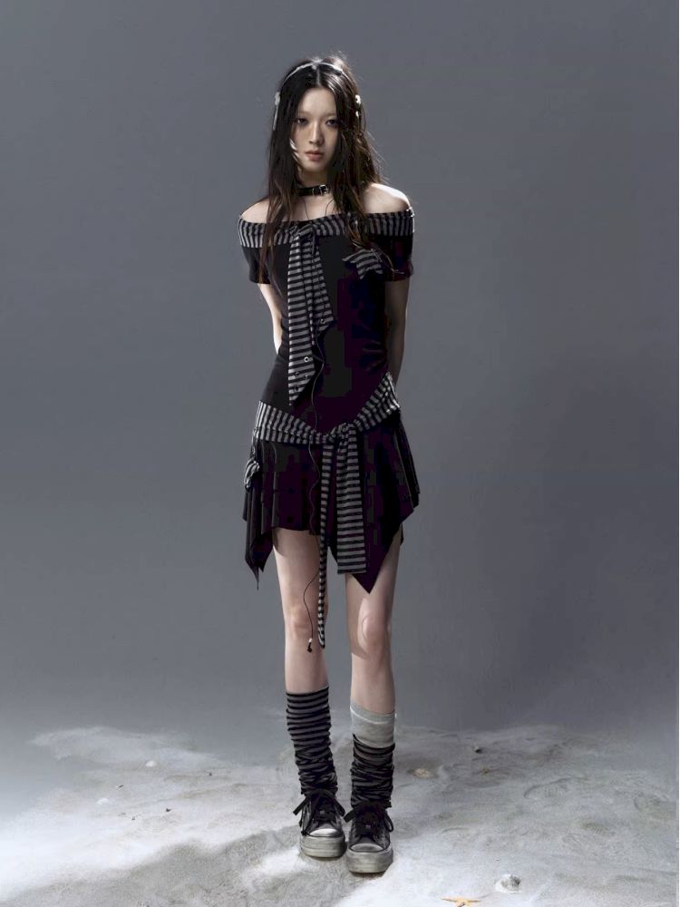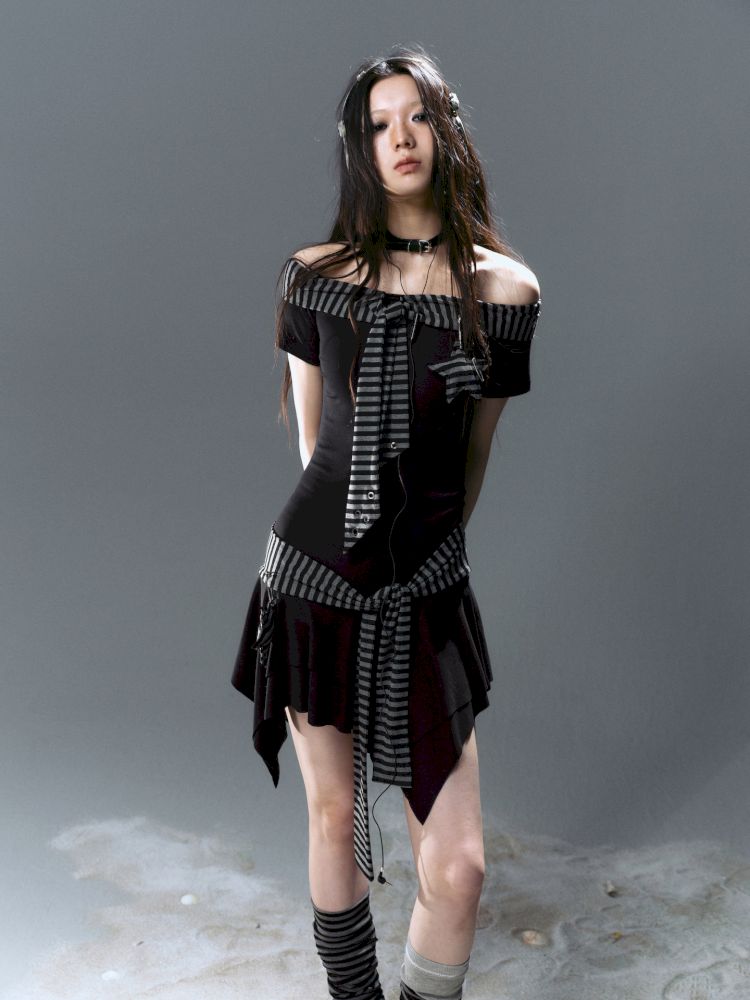 Starfish Striped Tie One Shoulder Dress【s0000012629】