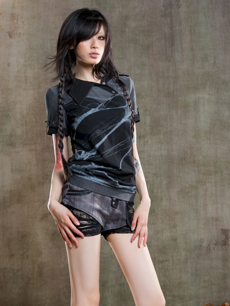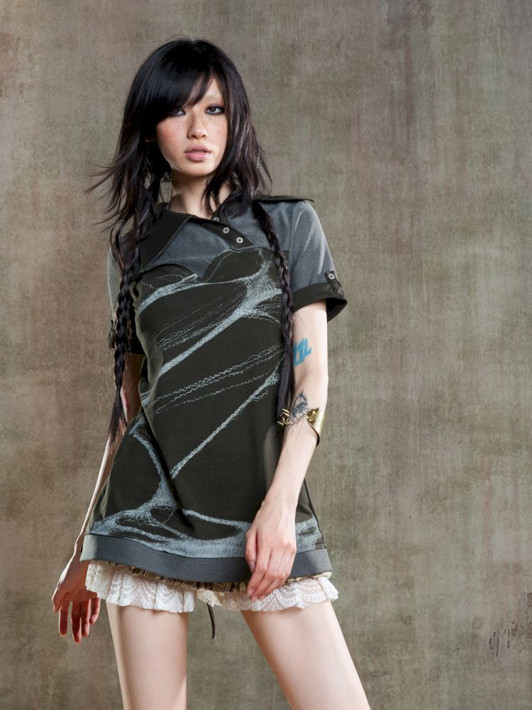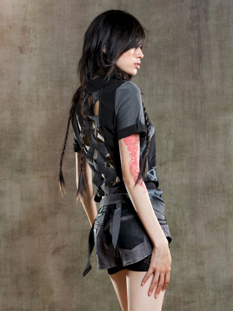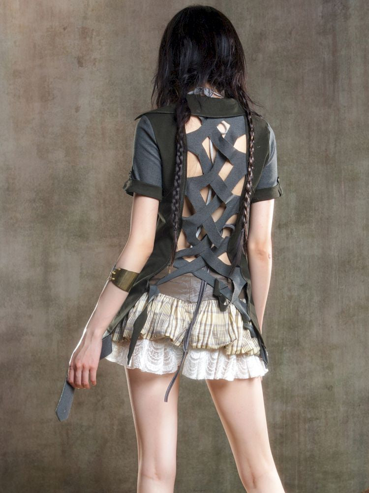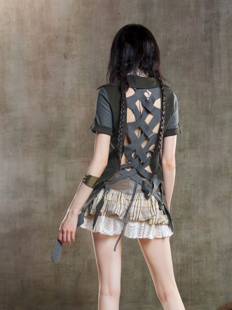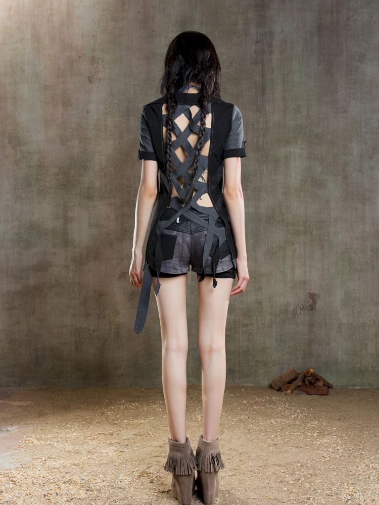 Lapel Short Sleeve Backless t-shirt【s0000012646】