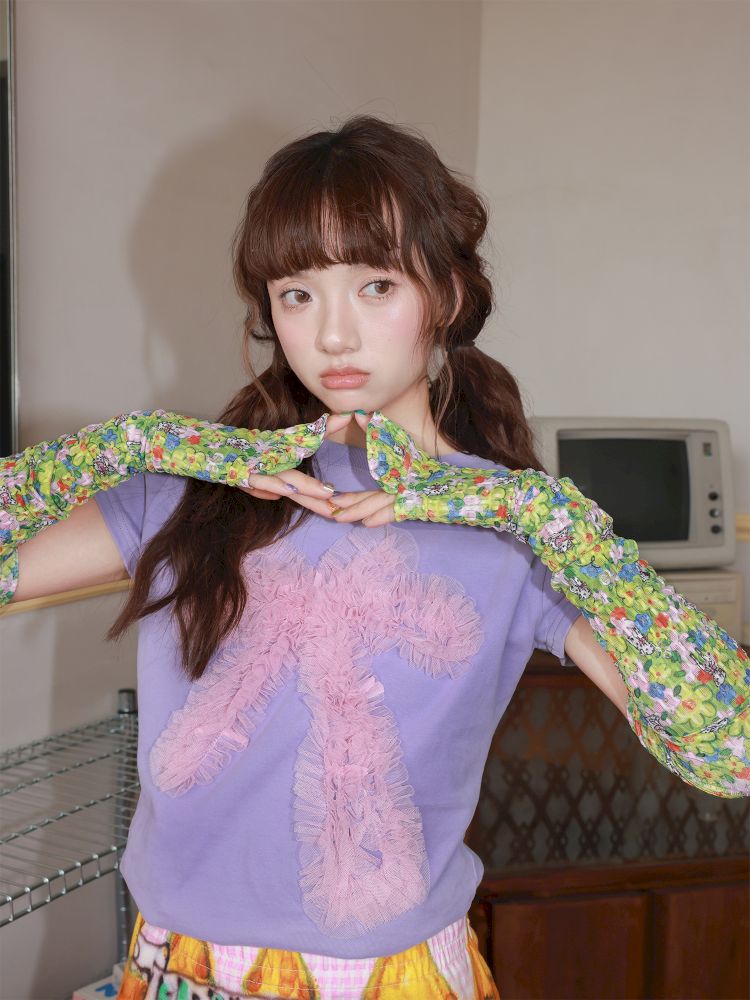 Yellow floral print sun protection arm sleeves【s0000012825】
