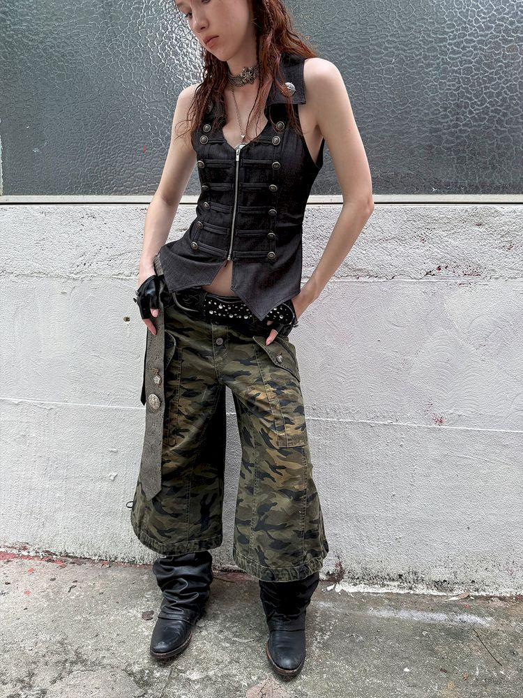 Camouflage Capri Bell-Bottom Pants【s0000012835】