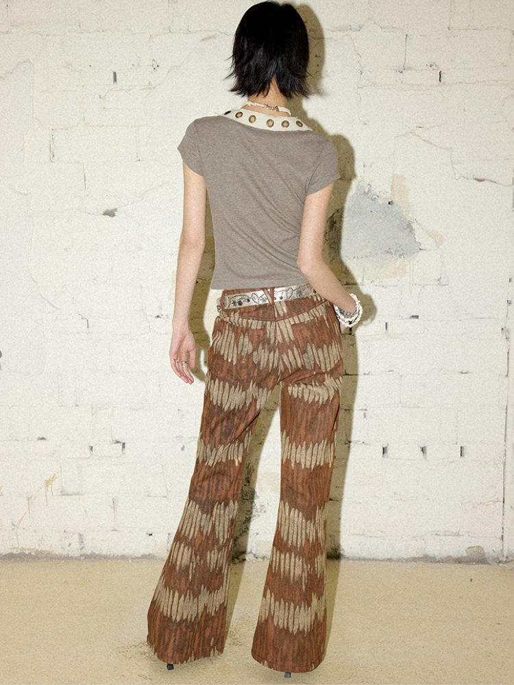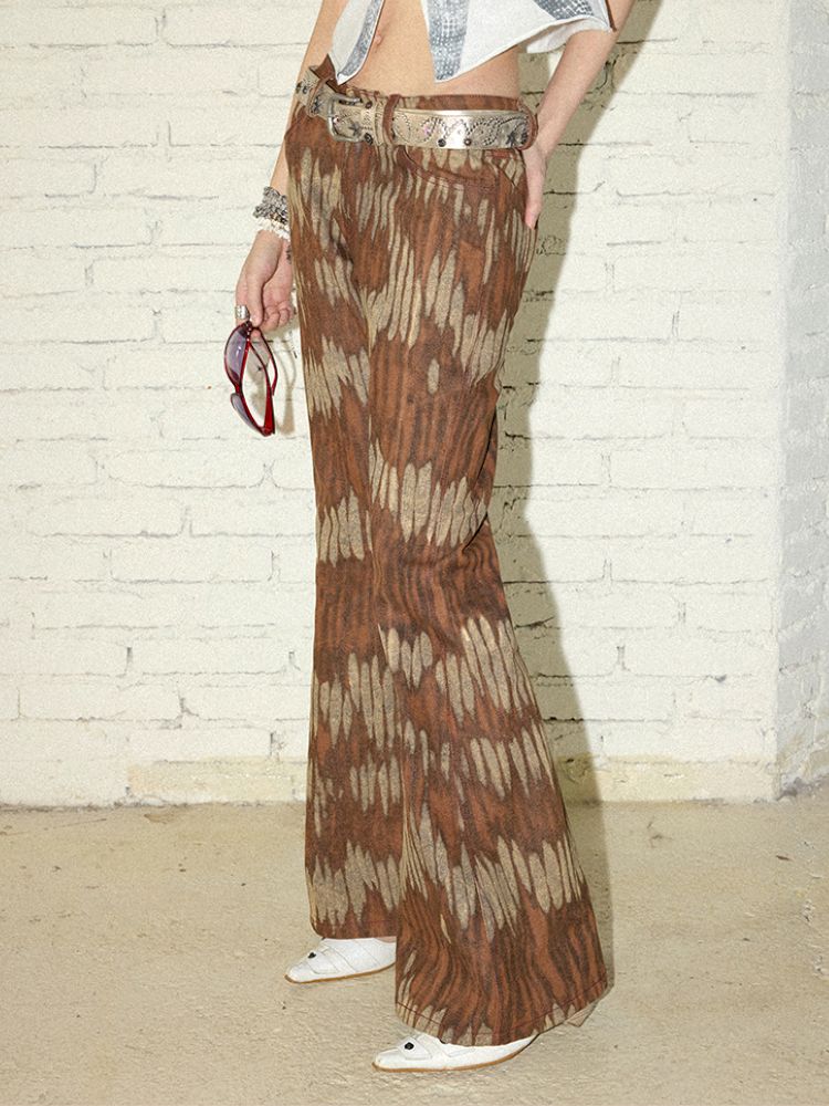 Retro Printed Bell-Bottom Pants【s0000012952】