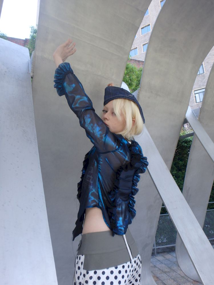 Metallic-colored broken polarized blue mesh cardigan【s0000013178】