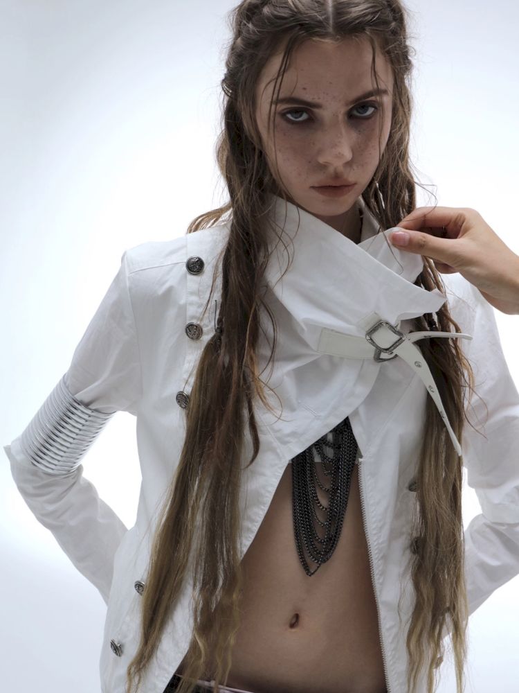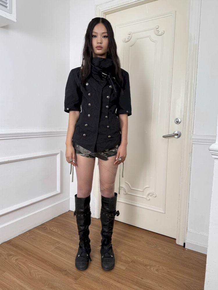 High-Neck Metal Buckle Napoleon Windbreaker【s0000013902】