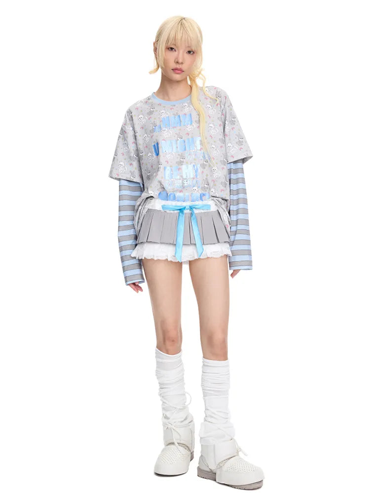 Bow-Tie Lace Two-Piece Style Pleated Skirt【s0000014089】