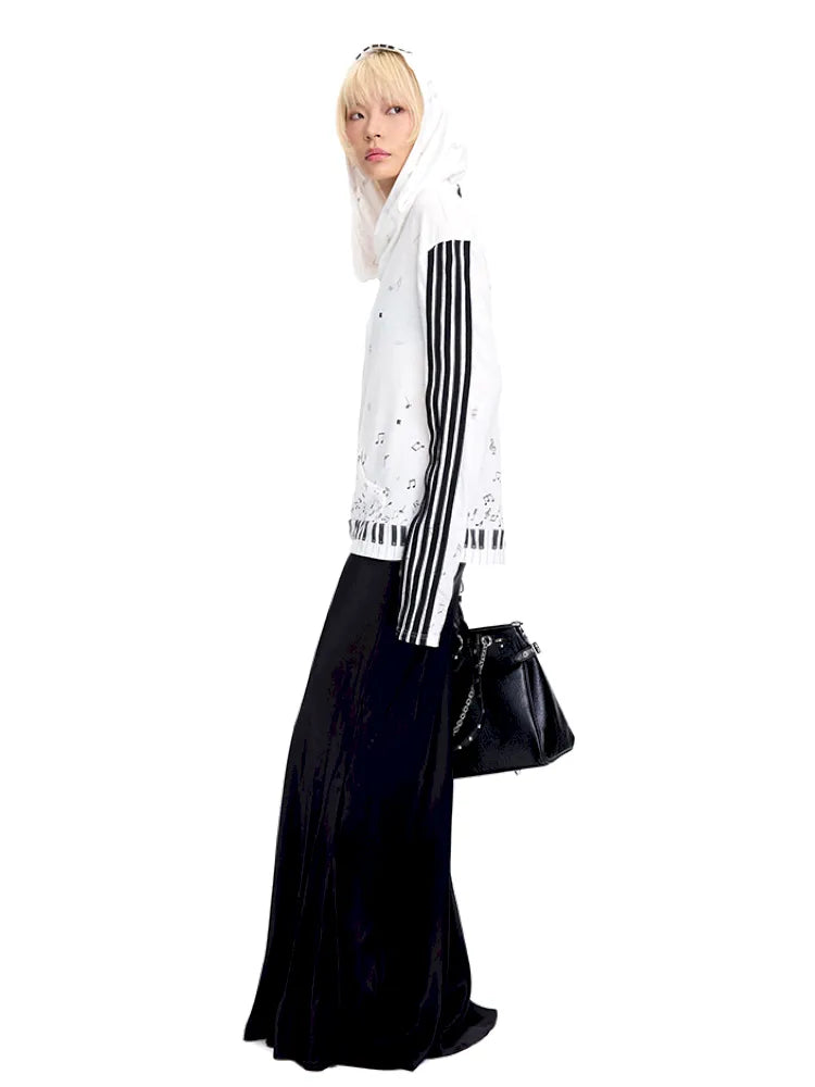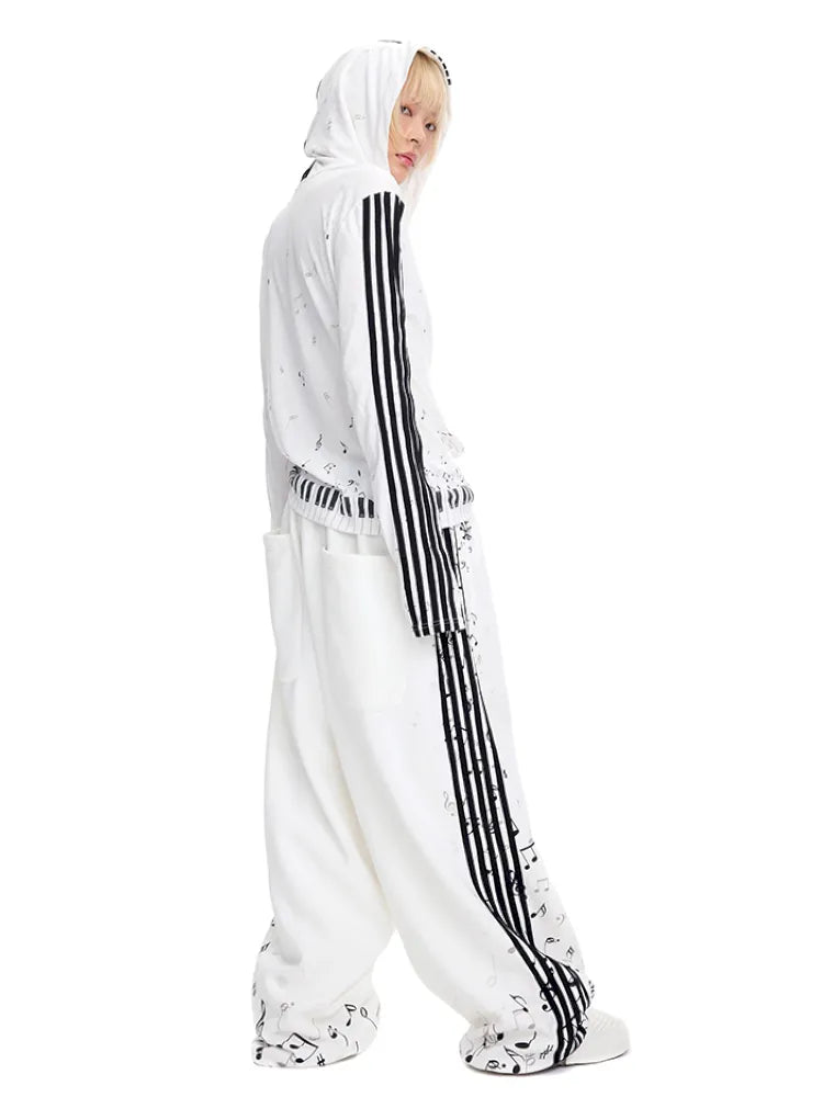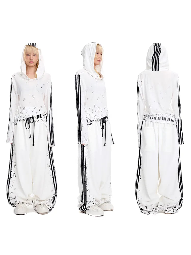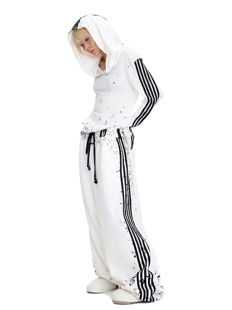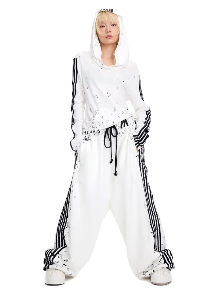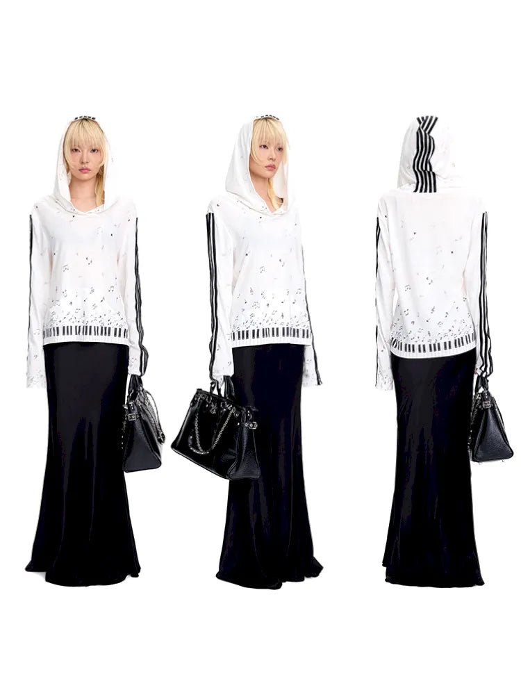 Piano Note Print Pullover Long-Sleeve Sweatshirt【s0000014100】