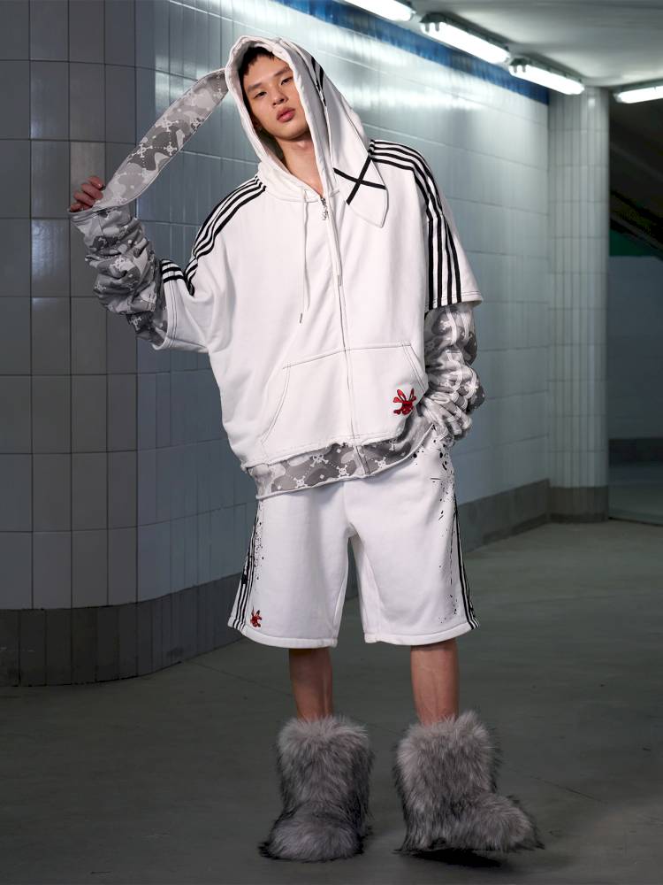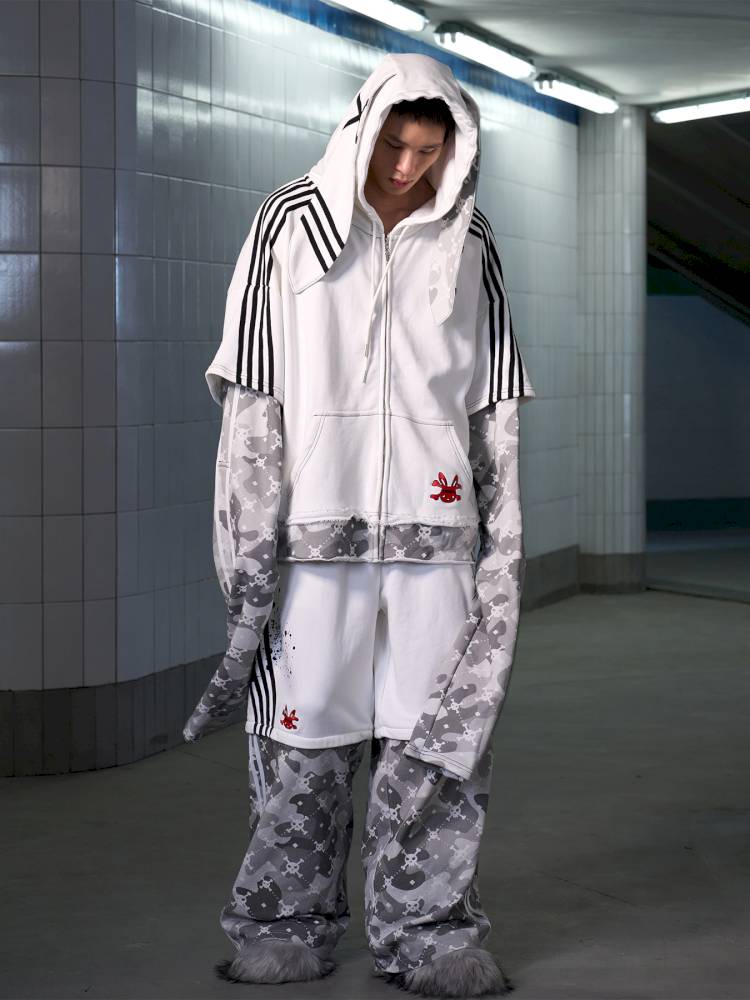 Skull Print Puff Sleeve Rabbit Ear Hoodie Jacket【s0000014419】
