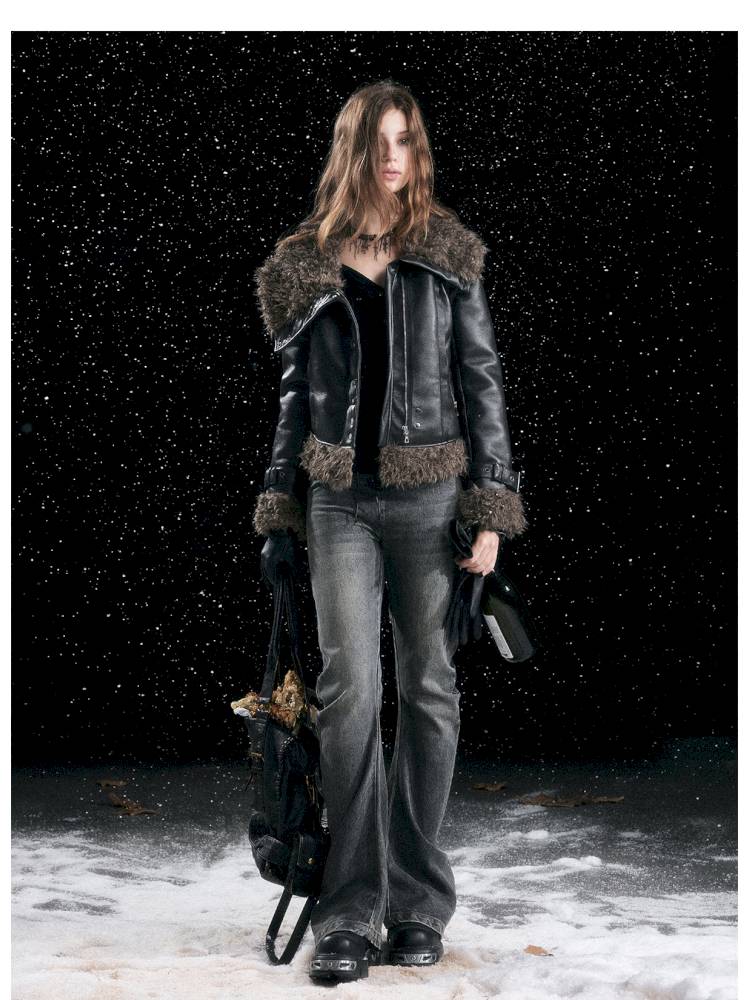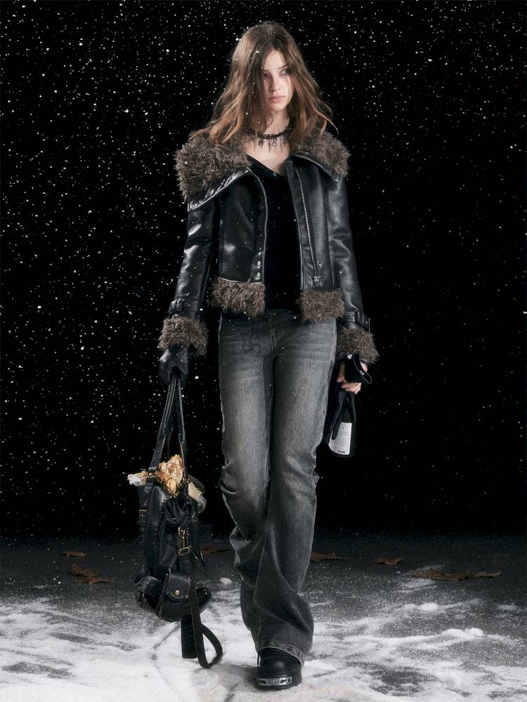 Leather-Trimmed Patchwork Pleated Jeans【s0000014424】