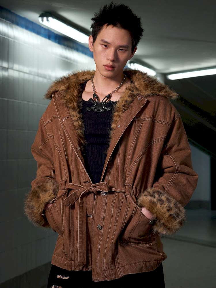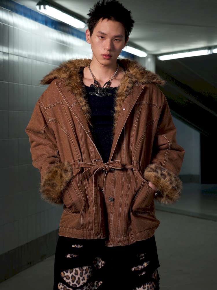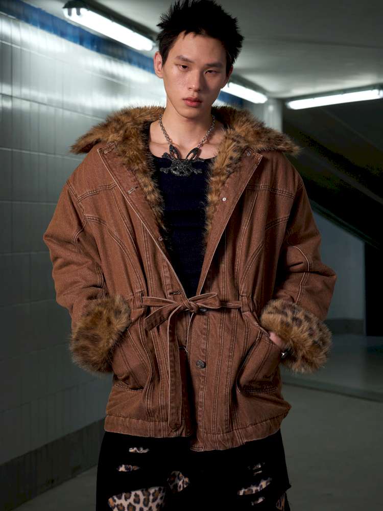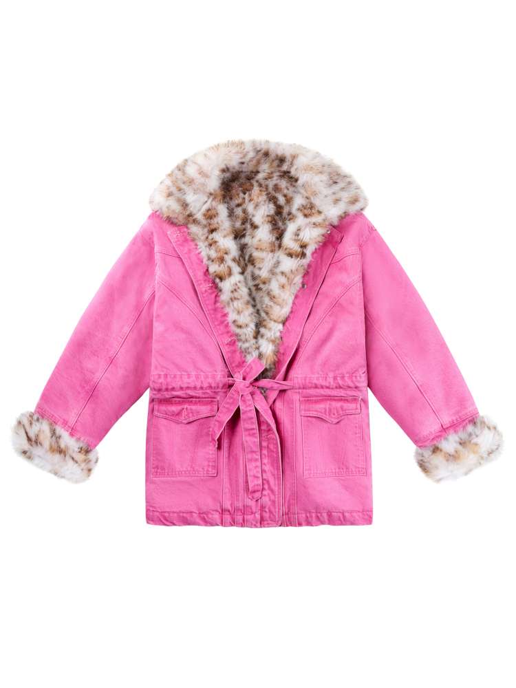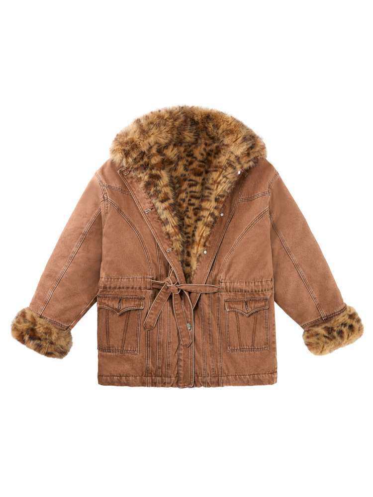 Leopard Print Paneled Denim Jacket【s0000014640】