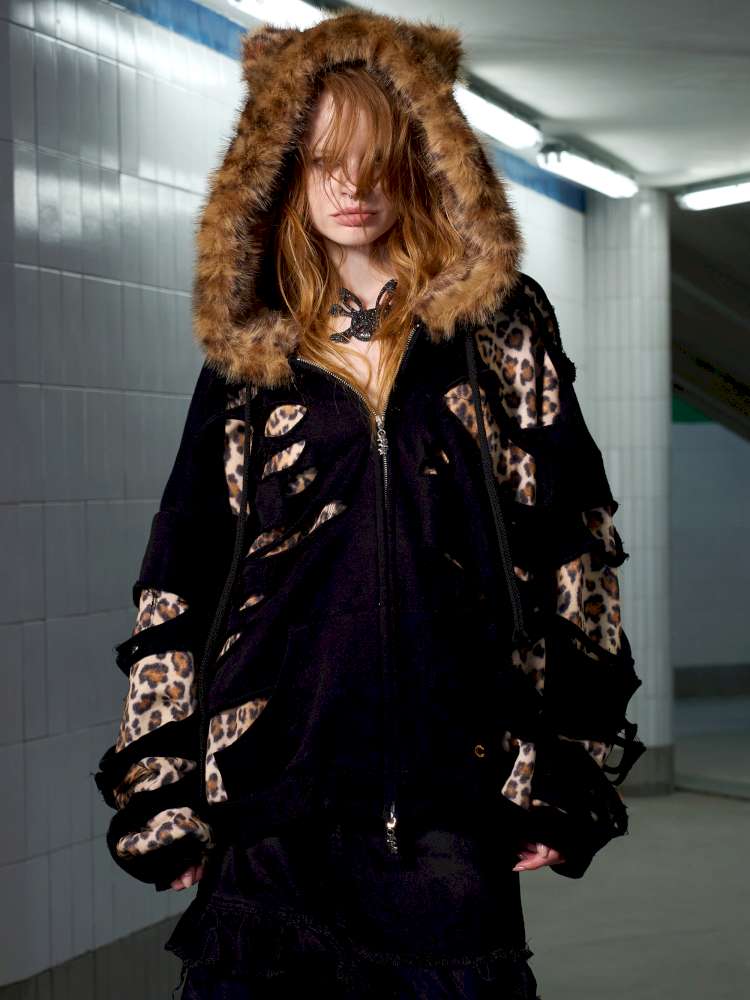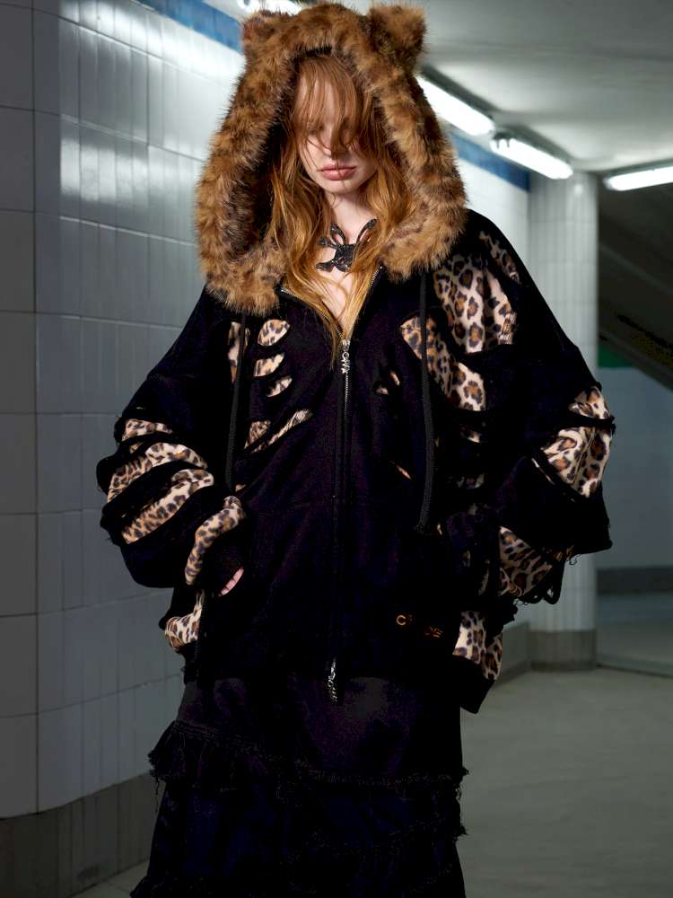 Leopard Print Rip Double Sweatshirt【s0000014646】