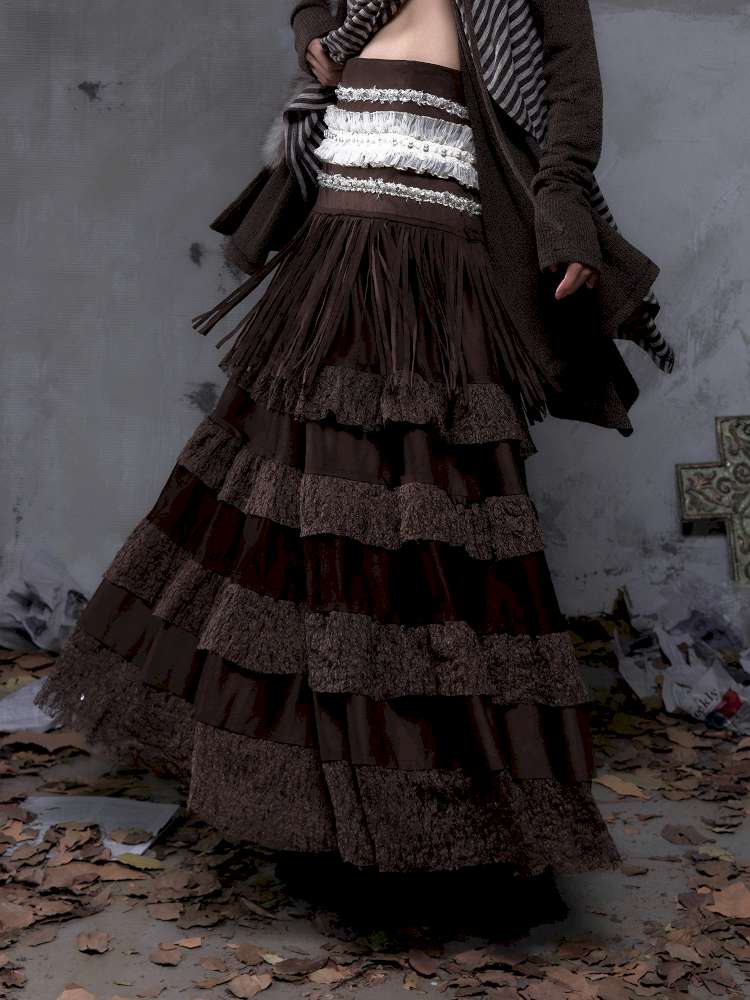 Lace Suede Fringe A-line Skirt【s0000014649】