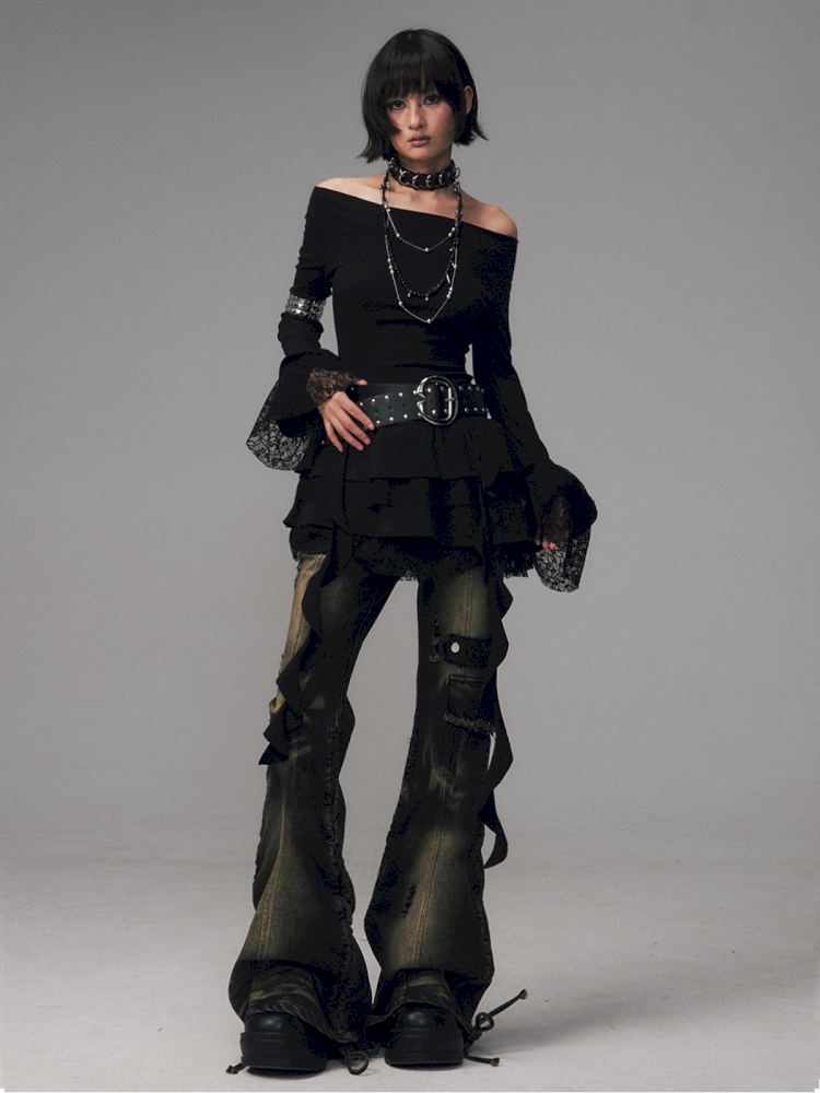 Punk Vintage Washed Drawstring Flared Pants【s0000014706】