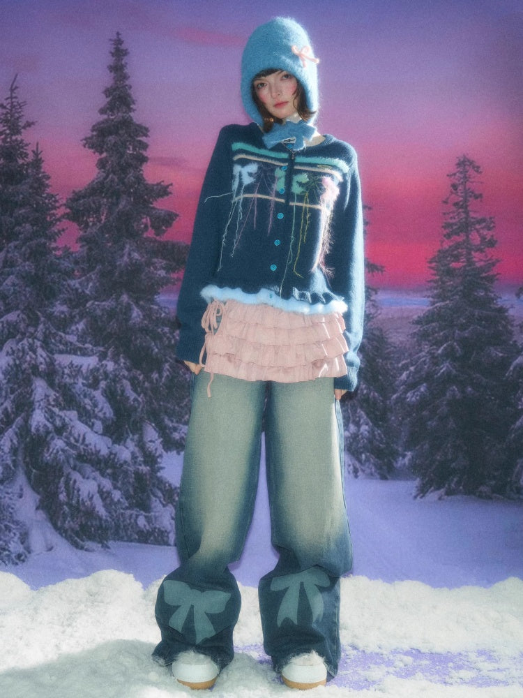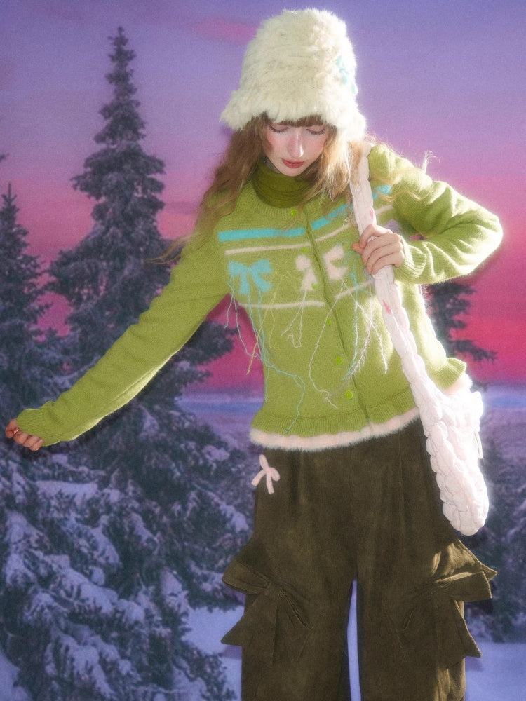 American Retro Design Sense Bow Hanging Silk Soft Glutinous Lazy Style Sweater Cardigan Jacket【s0000014783】