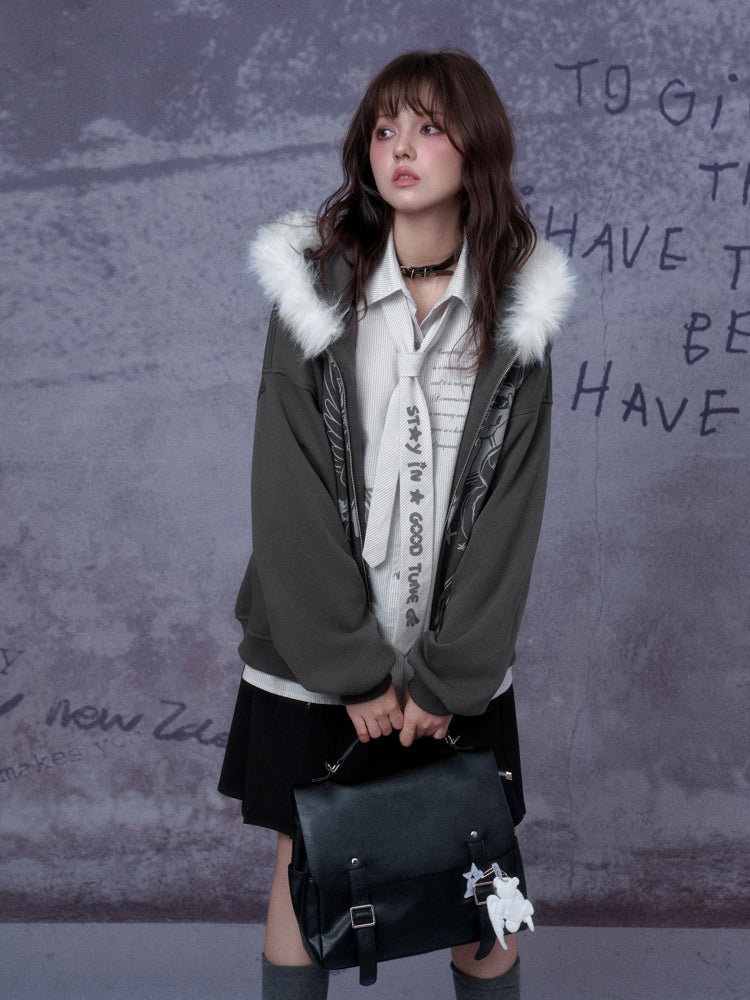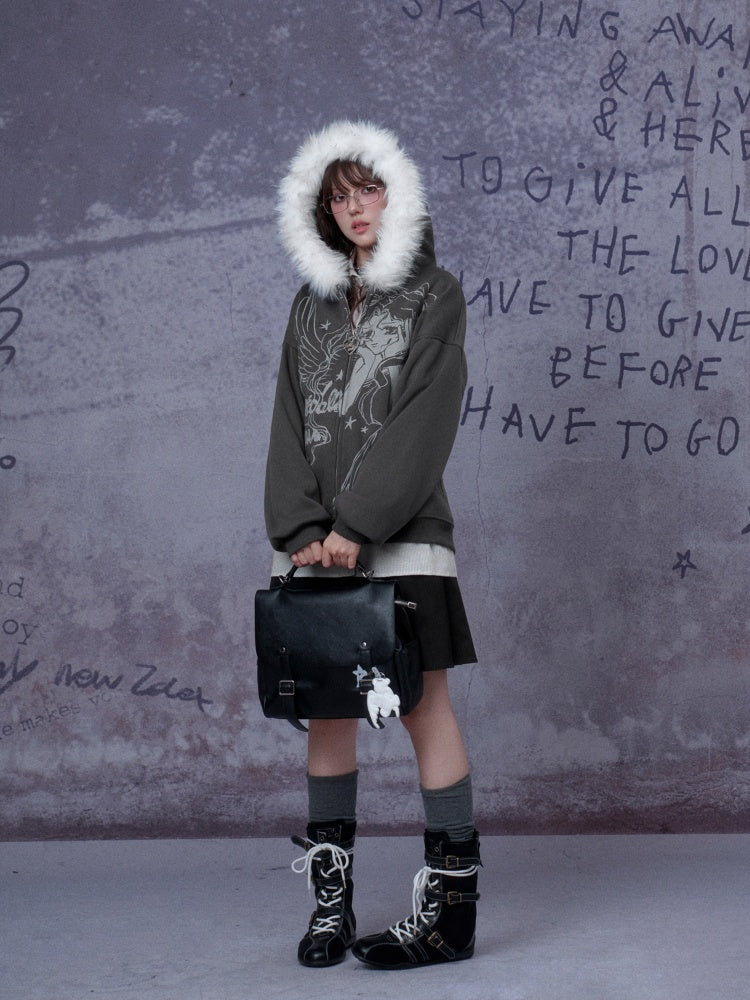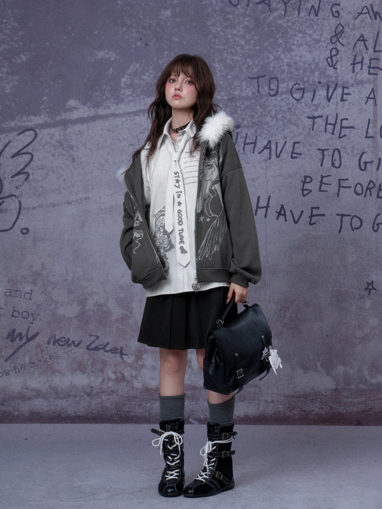 Angel Paradise Lost Manga Print Fleece Sweatshirt Jacket Face Hat Loose【s0000014791】
