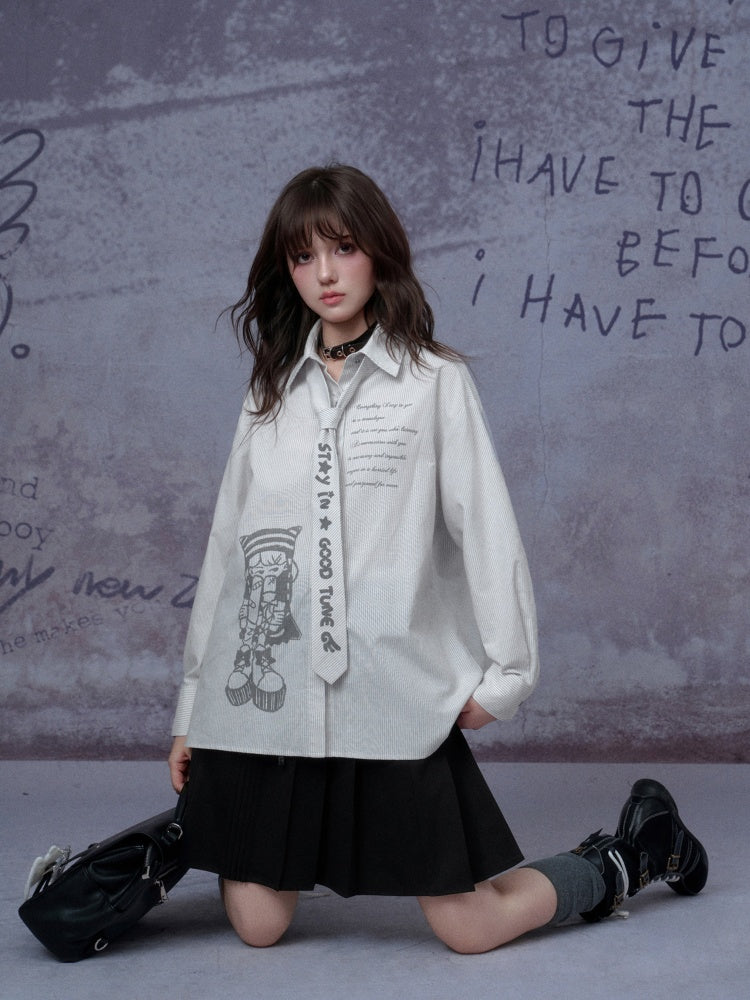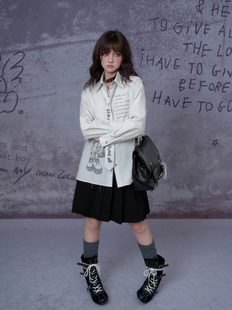 Playful Sweet Cool Original Comic Print Shirts Niche Tie【s0000014793】