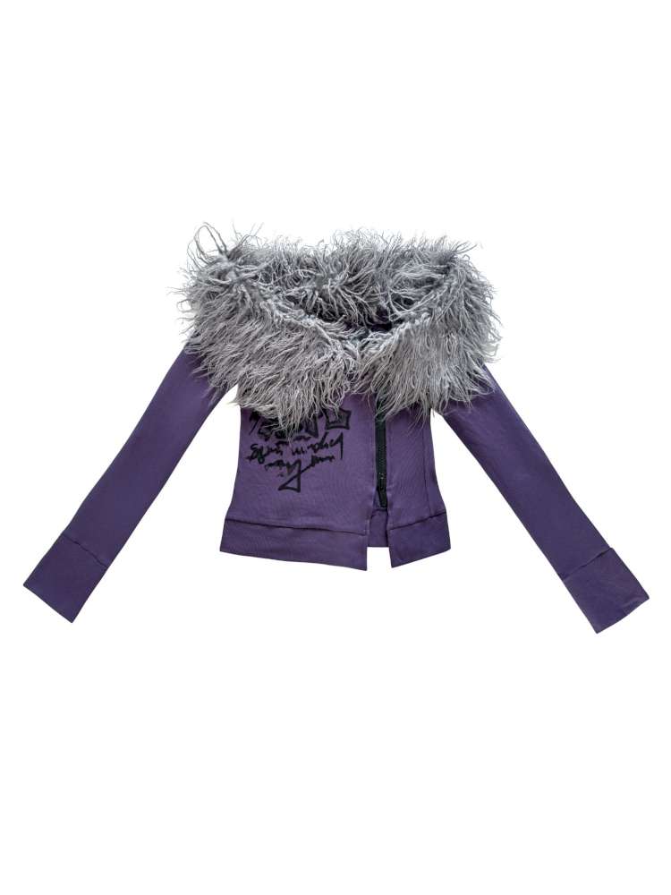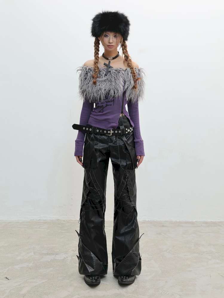 Hairy One-Shoulder Slim Print Knit T-Shirt【s0000014828】