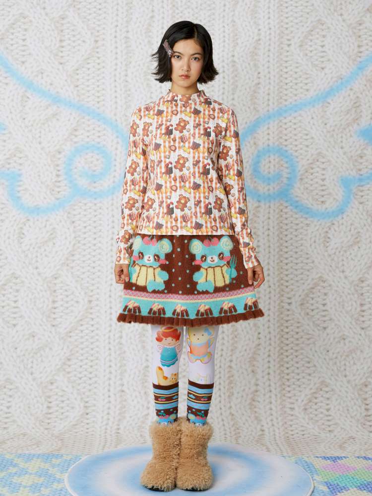 Cookie Print Waffle Base T-Shirt【s0000014856】