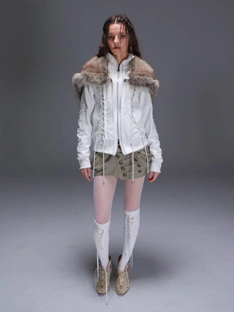 "Northern Night Patrol" Strap-On Eco-Friendly Fur Shawl Parka Cropped Jacket【s0000014948】