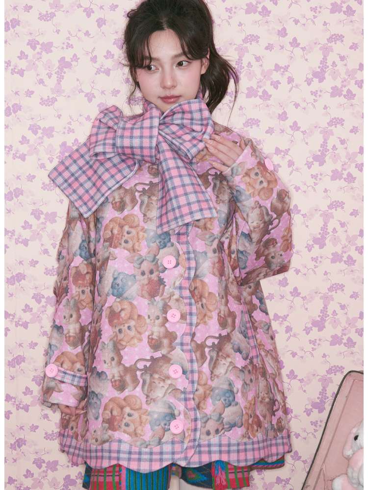 Pink Plaid Animal Padded Jacket【s0000015026】
