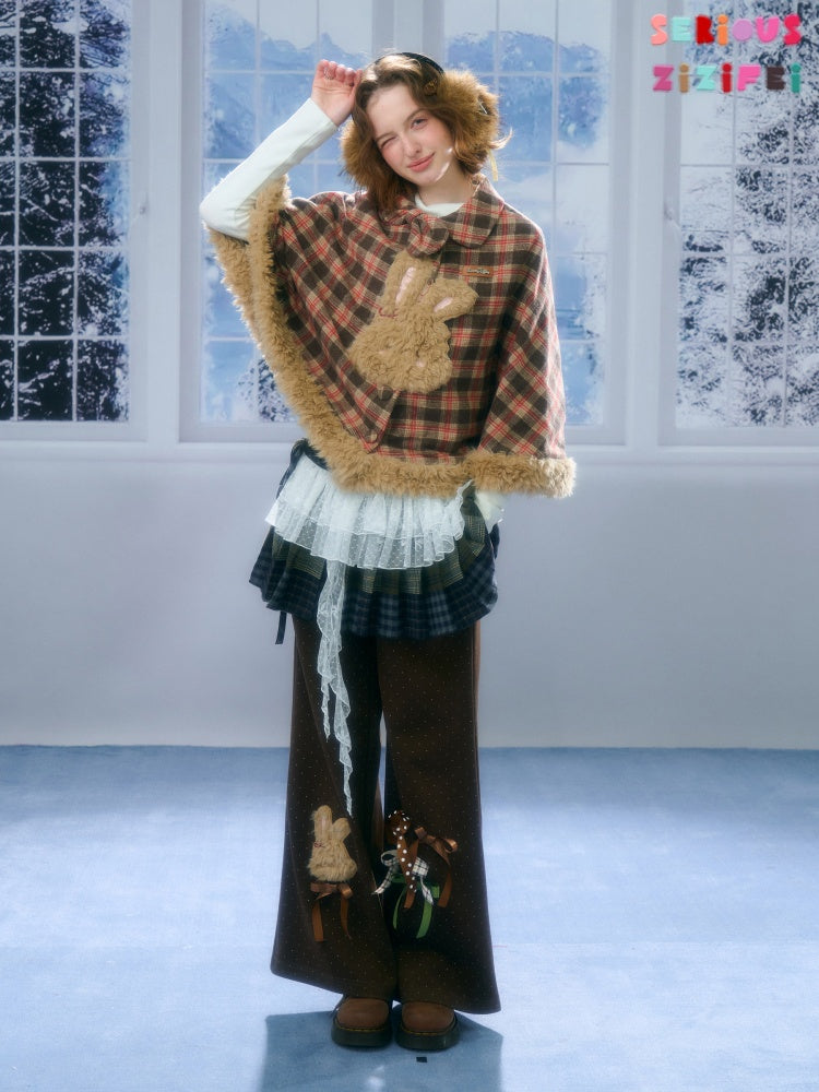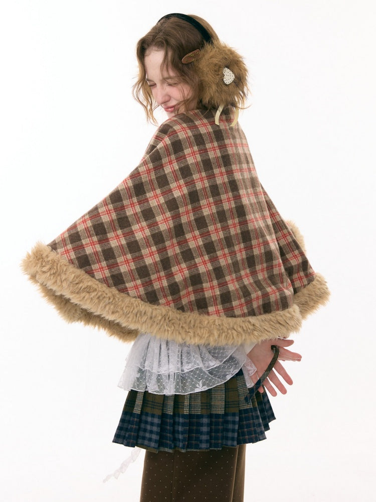 Fairy Tale Adventure Rabbit Plaid Plush Cloak Shawl Jacket【s0000015292】