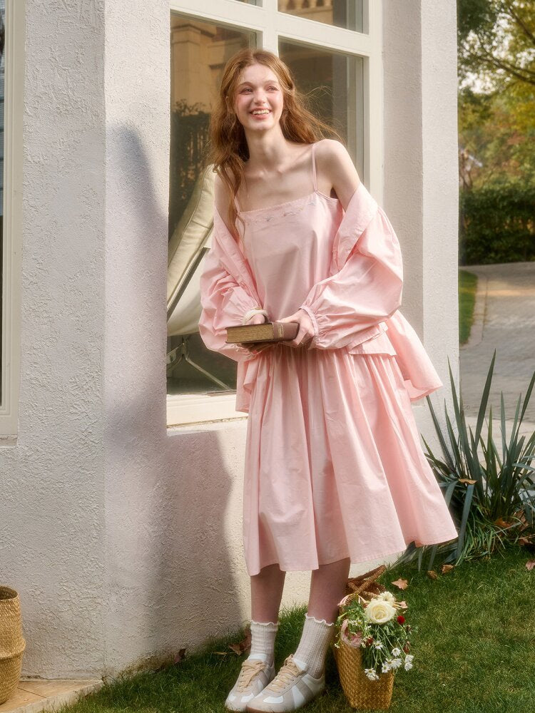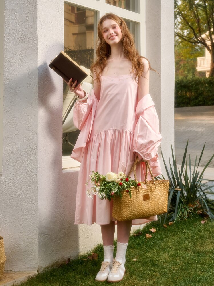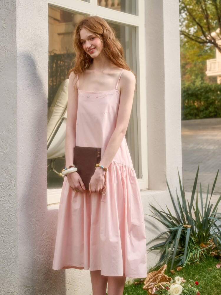 Pink Cotton Embroidered Shirt Dress【s0000015620】