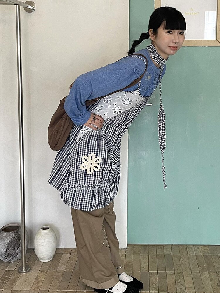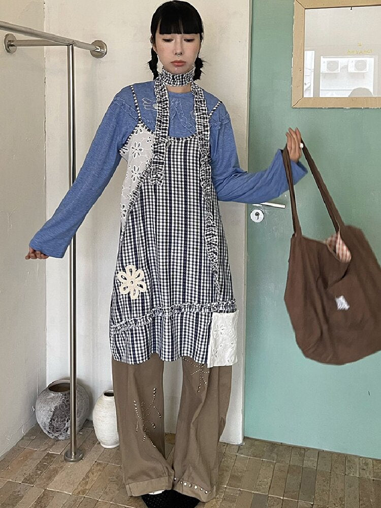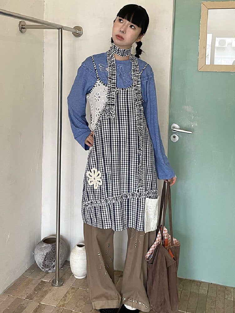 - Material:Plaid: Polyester 80% Rayon 20% / White Lace: Cotton 100%